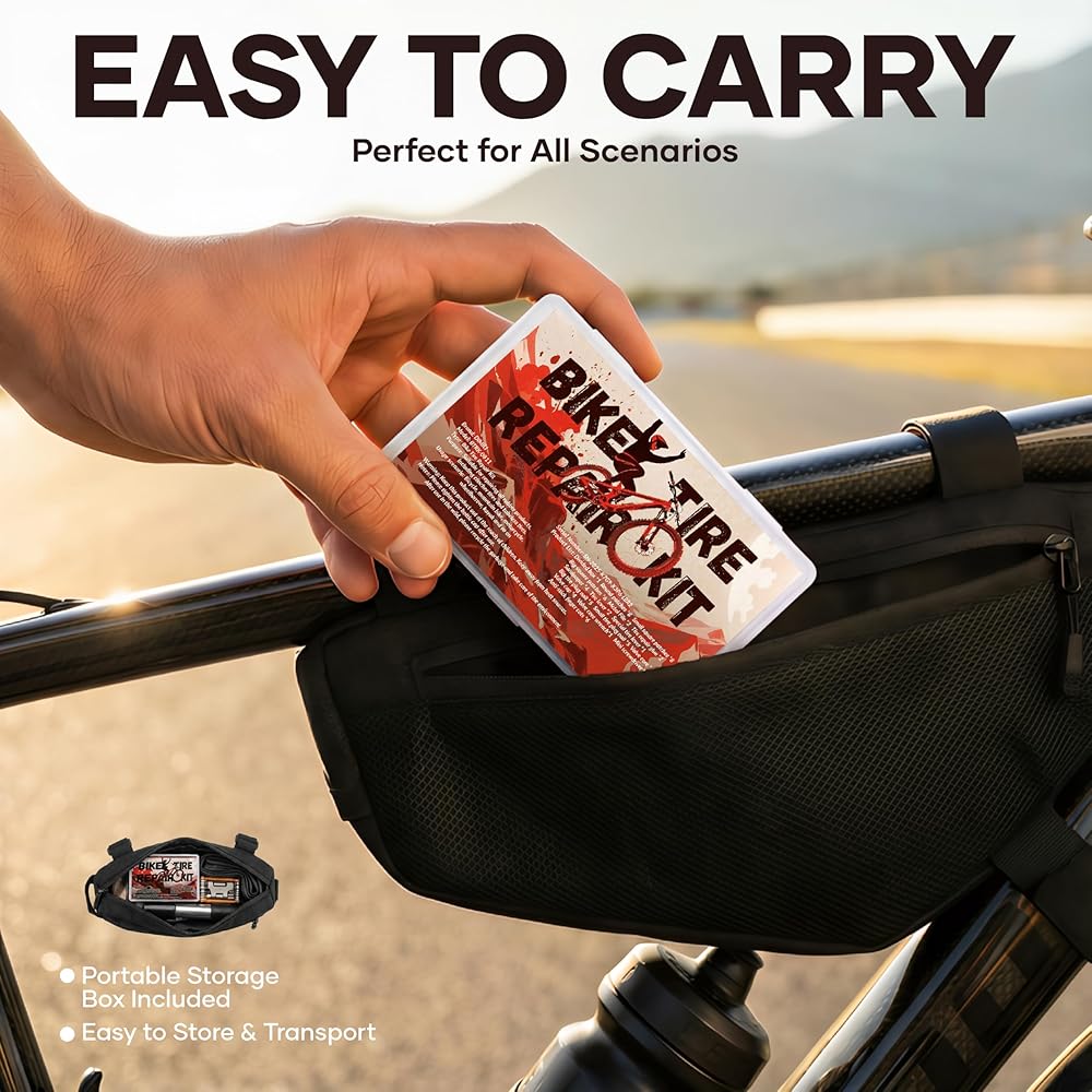 ✅حافظة صلبة نحيفة (6.3×4.72×0.59 بوصة) - أكثر سهولة في الحمل من الحقائب الناعمة/الصناديق الكبيرة (تناسب حقائب سرج الدراجة أو حقائب الظهر). مقاوم للماء/الغبار لحماية الأدوات. سواء كنت تتنقل أو تسير على الطرق الوعرة، فإن مجموعة Parches Para bicicleta (طقم رقعة الدراجة) سهلة الحمل والاستخدام في أي وقت.