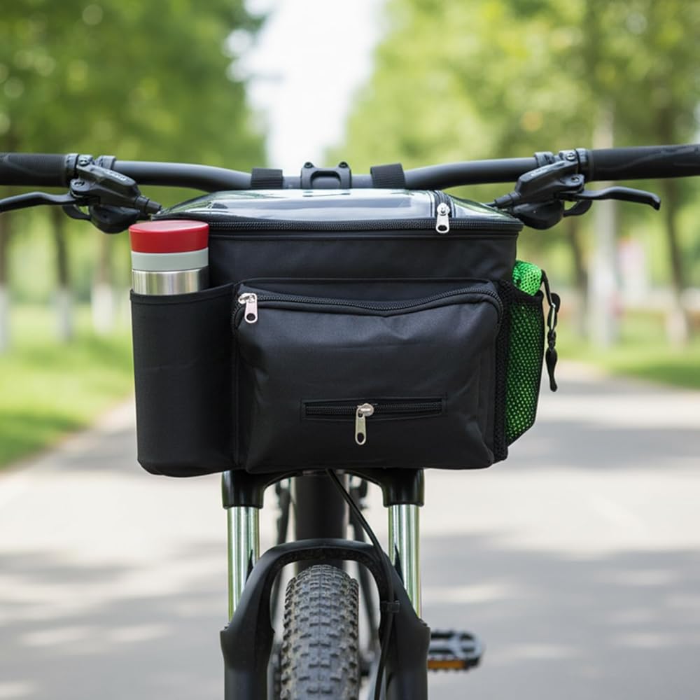 Bike Handlebar Bag,Large Bicycle Front Storage Pouch Bag,6.5 inch Transparent Pouch with Shoulder Strap