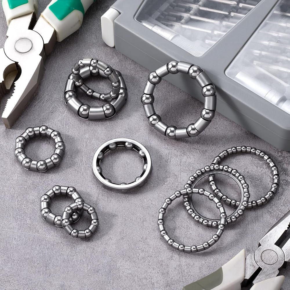 DC,CLISENCE 30 Pcs Bike Bearings, Bike Balls, Bmx Bicycle Parts, Ball Bearing Fixed Cage for Bicycles 4mm to 8mm / 1/6” to 1/3“ Repair Accessories (Silver)