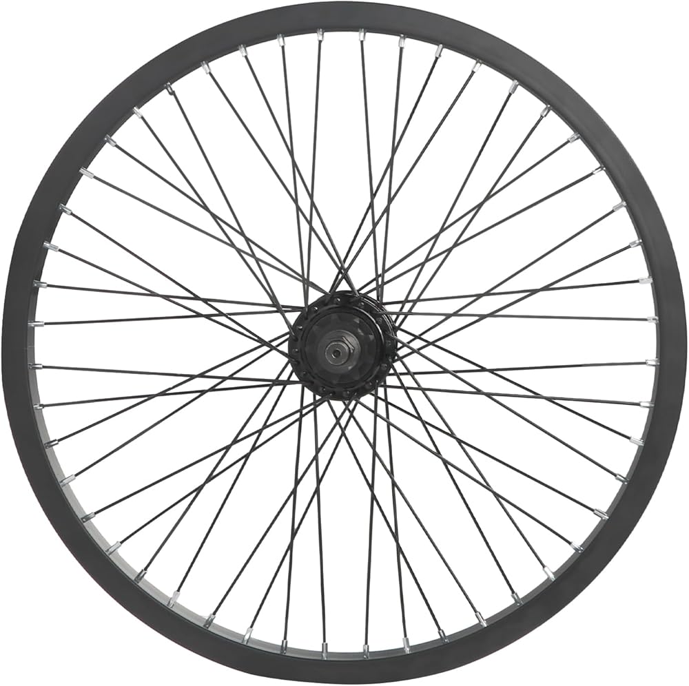 عجلة بي إم إكس 20 × 1.75 48 ساعة، عجلة أمامية وخلفية مع عجلة حرة أحادية السرعة وحافة ألومنيوم، أسود