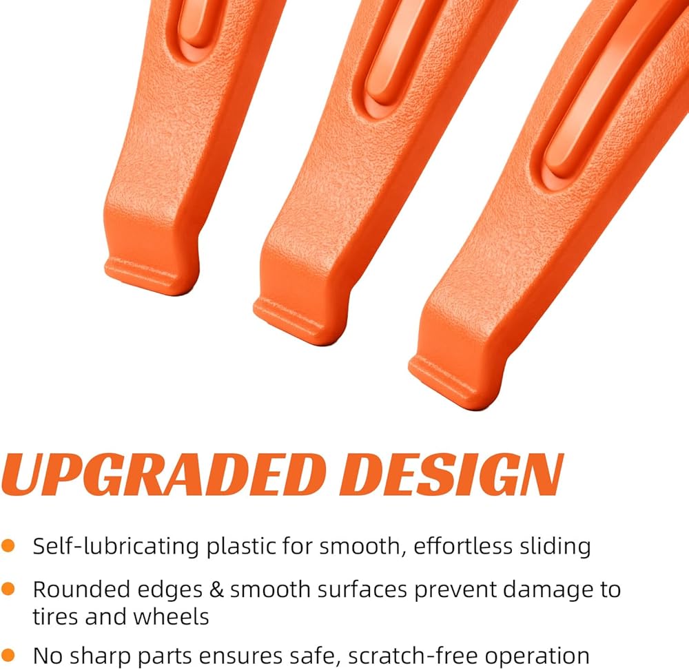 【Self-Lubricating Engineered Plastic 】Our tire levers are smooth, rounded edges paired with a glide-enhanced finish let you easily lever and slide tires off rims—no scratches, no hassle