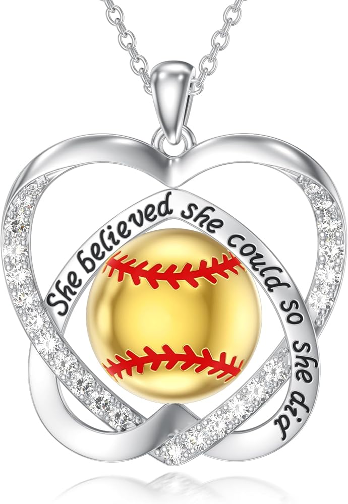 تصميم قلادة كرة السلة: قلادة على شكل قلب كرة السلة هذه تضع كرة السلة في إطار قلب، مقترنة بعبارة تمكينية "لقد اعتقدت أنها تستطيع فعل ذلك". فهو يمزج بين شغف كرة السلة والتشجيع الصادق، وهو مثالي لمحبي كرة السلة
