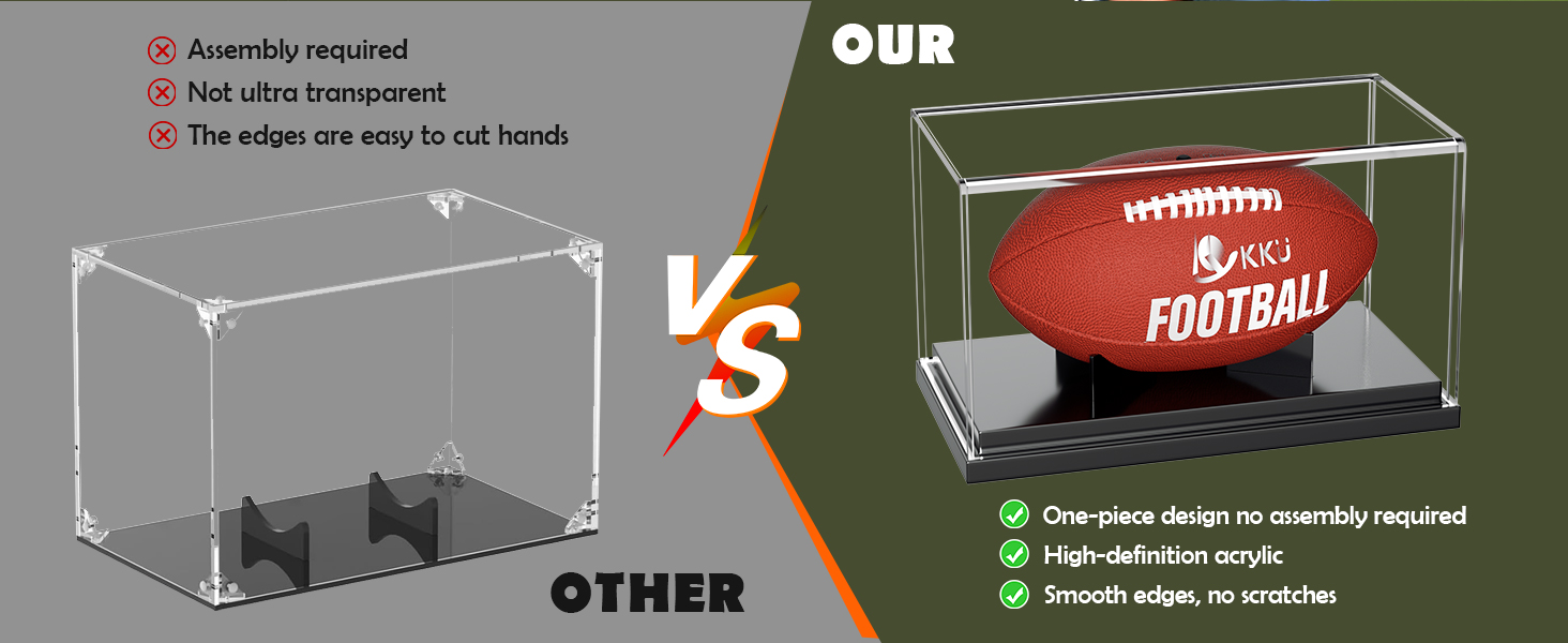 • هيكل متين وسهل الاستخدام: مصنوع من الأكريليك المتين، تضمن علبة عرض كرة القدم سلامة وأمان كرة القدم الخاصة بك لسنوات قادمة. وتسمح عملية الإعداد السهلة بتبديل شاشتك أو تحديثها بسهولة، مما يجعلها خيارًا مناسبًا لأي متحمس لكرة القدم