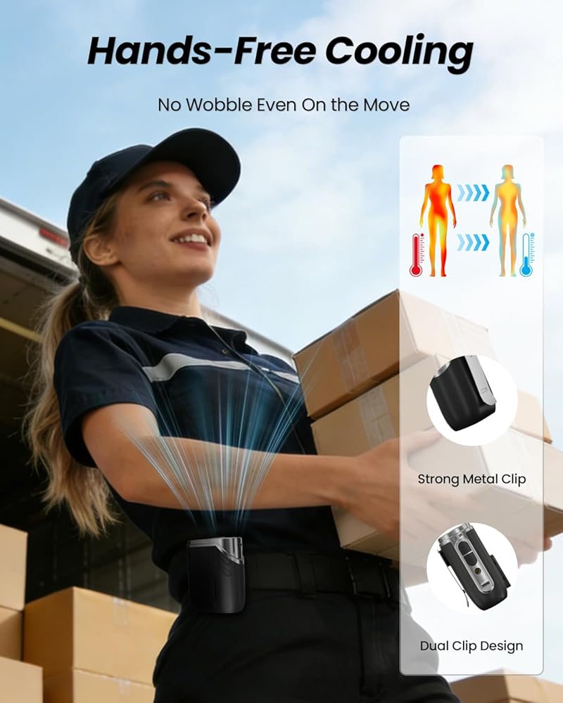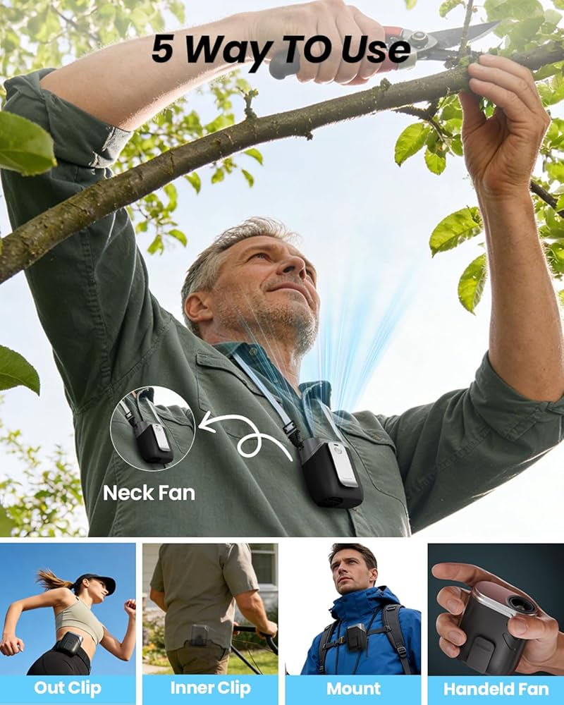 5 في 1 متعددة الاستخدامات: أكثر من مجرد مروحة للخصر؛ ارتديها كمروحة للرقبة، أو ثبتيها بحزام القص، أو استخدميها باليد. يلبي ضوء LED المدمج ذو 3 أوضاع احتياجاتك من التبريد والسلامة