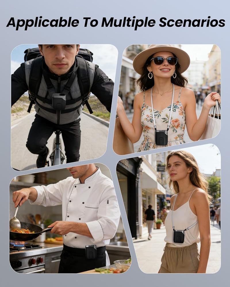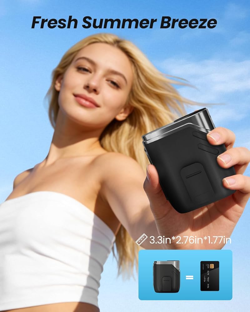 عمر بطارية طويل وشحن سريع: شحن كامل لمدة ساعتين تقريبًا عبر USB-C. 3-10 ساعات من التبريد. شاشة ديجيتال توضح سرعة المروحة ومستوى البطارية. مثالي للسفر والرحلات البحرية والحديقة وعطلات الشاطئ والتخييم والمطبخ والمشي لمسافات طويلة - هدية صيفية عملية للرجال والنساء