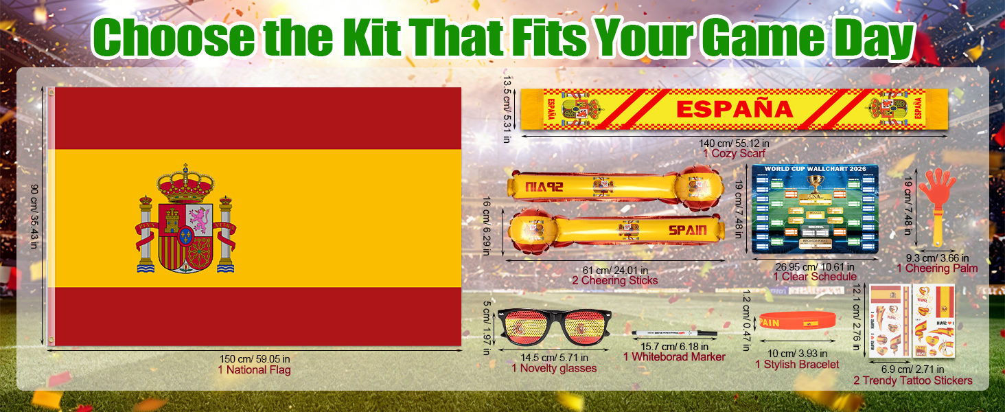 【مصممة لتتناسب مع نمط الفريق الوطني】متوفرة في 9 خيارات للبلدان، تم تصميم كل مجموعة حول ألوان وعناصر الفريق المختار. إنها طريقة سهلة للمعجبين لإظهار الدعم بصريًا وتمثيل بلدهم أو فريقهم المفضل.
