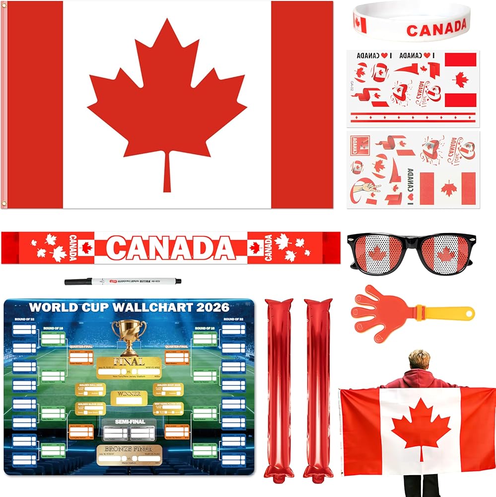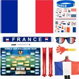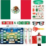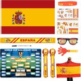 【ملحقات كاملة للمشجعين لأيام المباريات】تشتمل مجموعة دعم مشجعي كرة القدم هذه على علم وطني، وصفحتين من ملصقات الوشم المؤقتة، ونظارات تحمل طابع العلم، وسوار، ووشاح، وبالوناتين مشجعتين، وقشة واحدة (لنفخ بالونات الهتاف)، ويد مصفقة، وملصق جدول المباريات، و1 قلم سبورة بيضاء رفيع الرأس - كل ما تحتاجه لدعم فريقك خلال كأس العالم.