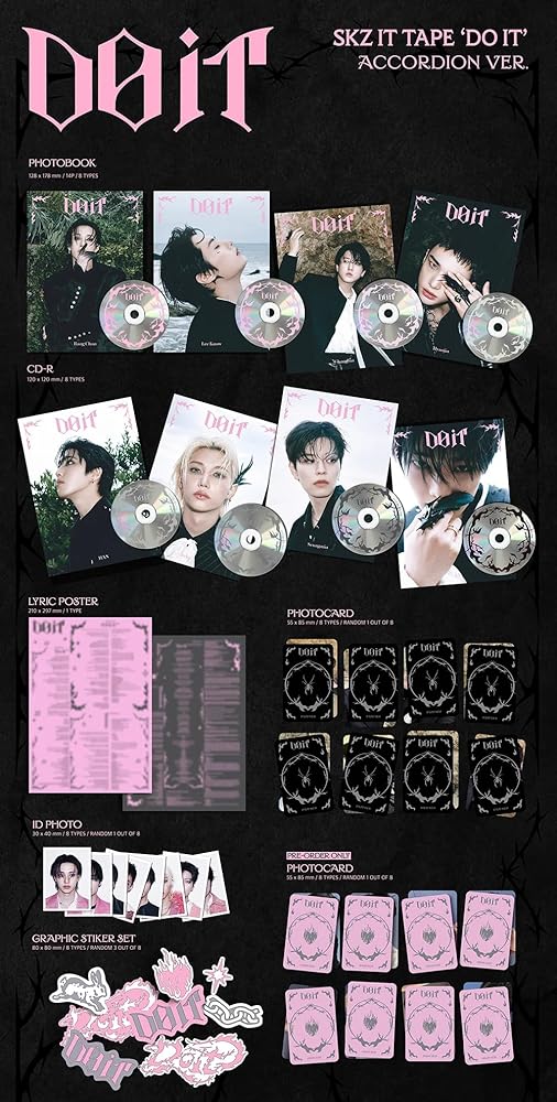 Stray Kids Do It SKZ IT TAPE Accordion [إصدار هان] كتاب صور + قرص مضغوط + بطاقة صور + صورة هوية + مجموعة ملصقات رسومية