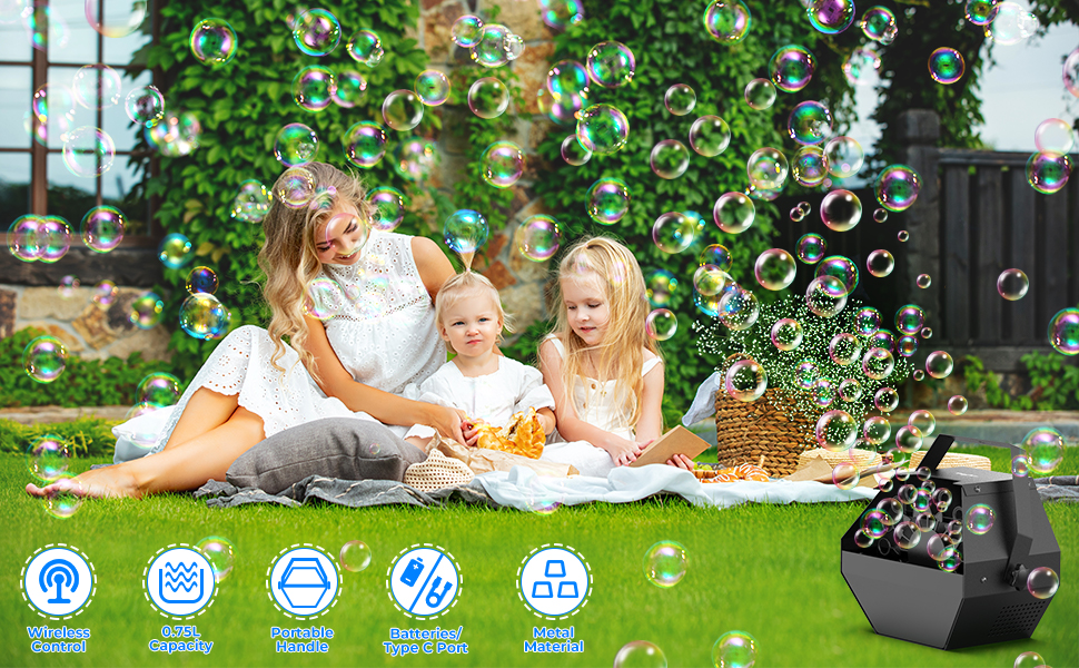 • Dreamy Atmosphere Creator: يمكن لآلة نفخ الفقاعات هذه أن توفر متعة لا نهاية لها وأجواء حالمة لسلسلة من الأنشطة مثل حفلات الزفاف وأعياد الميلاد والحفلات وساحات الحديقة الخارجية وما إلى ذلك.