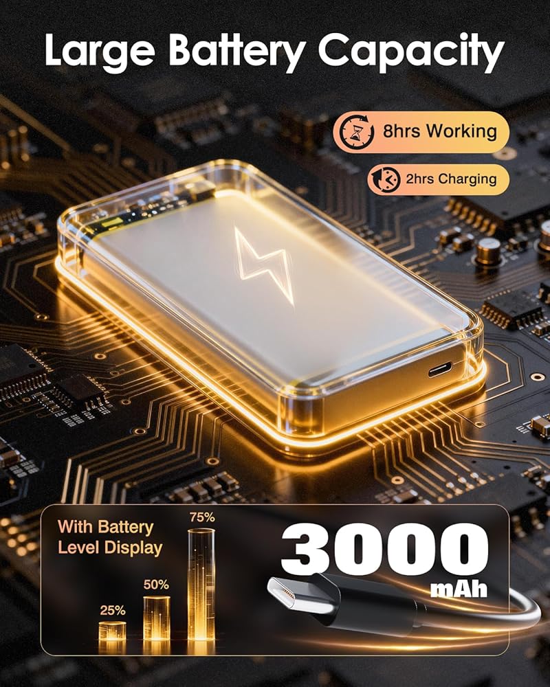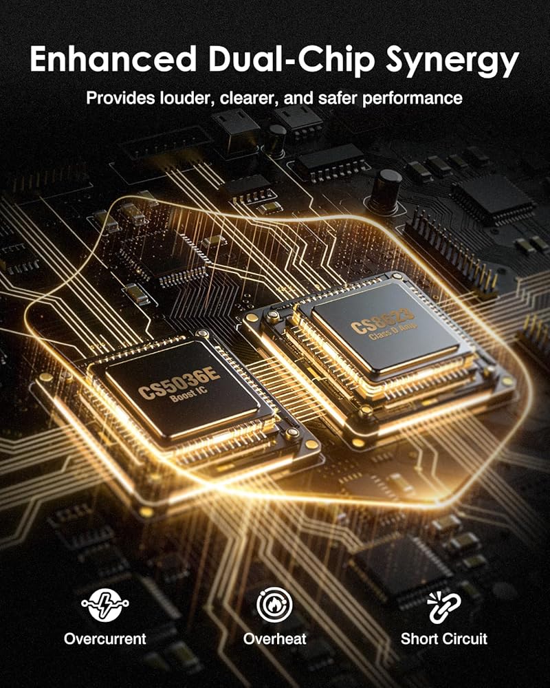 وقت تشغيل لمدة 8 ساعات وطاقة ثابتة: مدعوم ببطارية 3000 مللي أمبير في الساعة، يوفر هذا أمبير ما يصل إلى 8 ساعات من الأداء بدون توقف. على عكس الأمبيرات القياسية التي تفقد مستوى الصوت مع تلاشي طاقة البطارية، تحافظ الشريحة المتقدمة على طاقة الخرج الكاملة حتى النهاية. يشتمل تصميمه عالي الكفاءة ومنخفض الحرارة على واقيات أمان مدمجة لضمان المتانة على المدى الطويل. ابق متحكمًا مع شاشة عرض الطاقة LED الواضحة ذات 4 مستويات