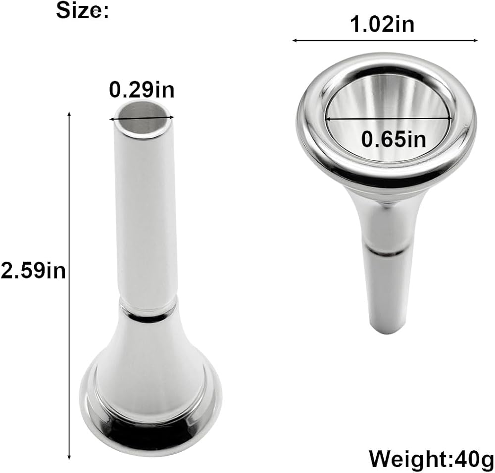 Upgrade your French horn's performance with our professional silver-plated mouthpiece, designed for musicians who demand precision and rich tonal quality. Crafted from solid brass and finished with a sleek silver plating, this mouthpiece delivers brighter highs, focused mids, and smooth articulation—whether you're practicing, performing in a concert band, or competing.