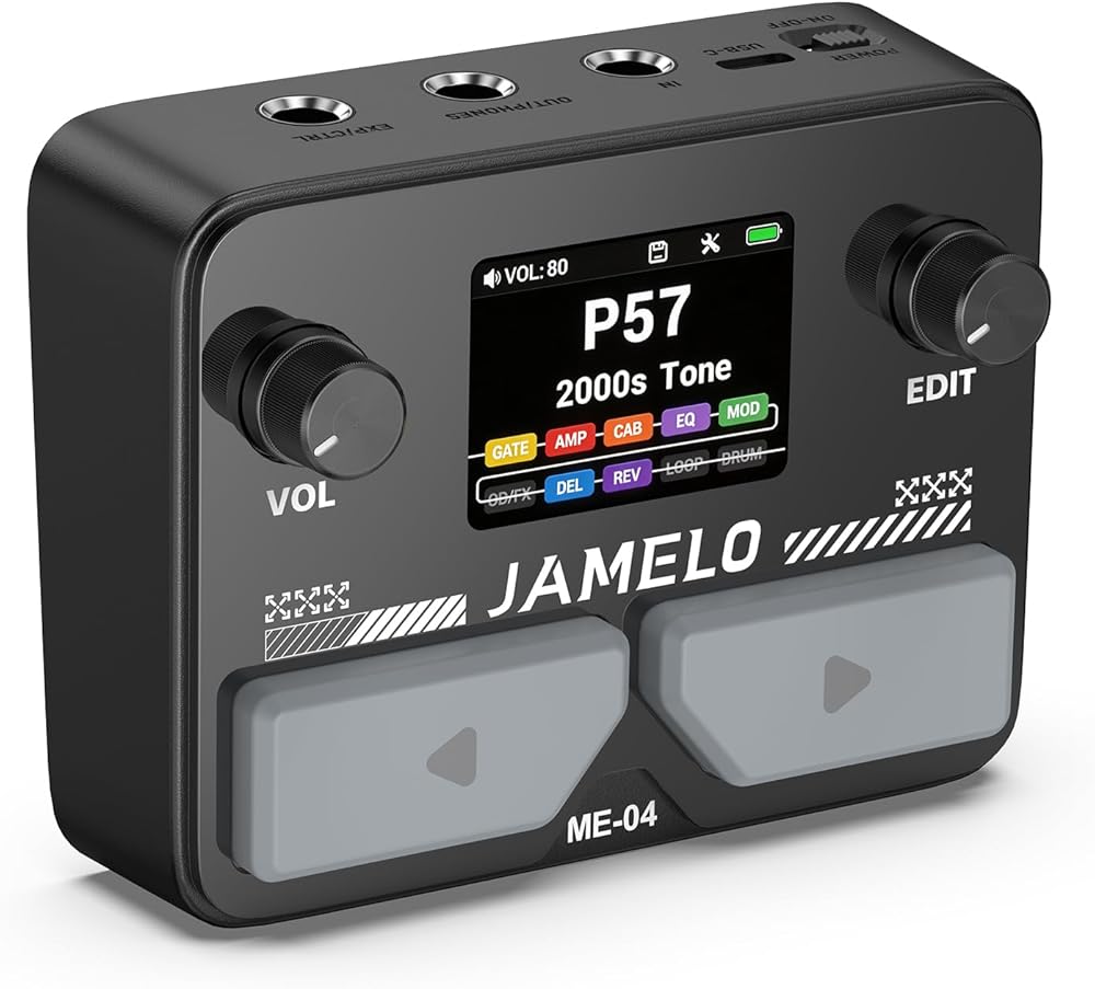 Introducing JAMELO multi-effects guitar pedal, a powerhouse processor that packs pro-level tone, creative tools, and studio-grade recording into a 250g chassis that slides into any backpack. Whether you're a bedroom producer chasing the perfect ambient texture, a busker working the streets, a touring musician needing a fly-rig backup, or a beginner finding your sound for the first time, ME-04 guitar effects pedal that grows with you.