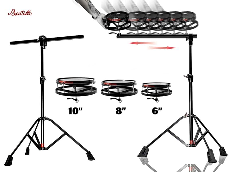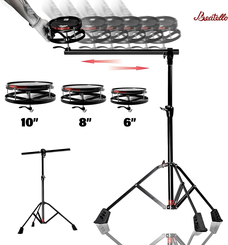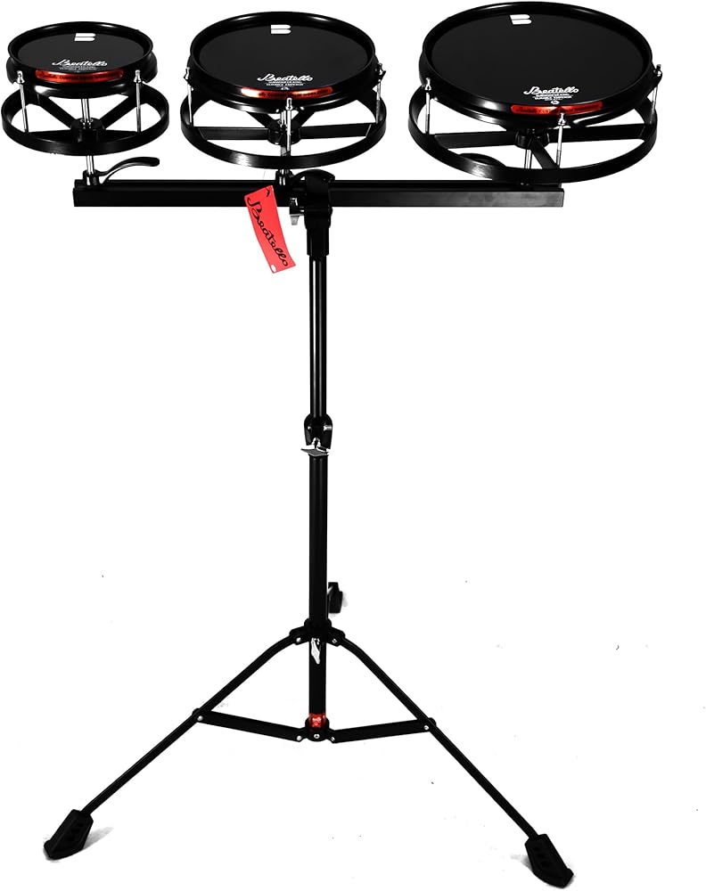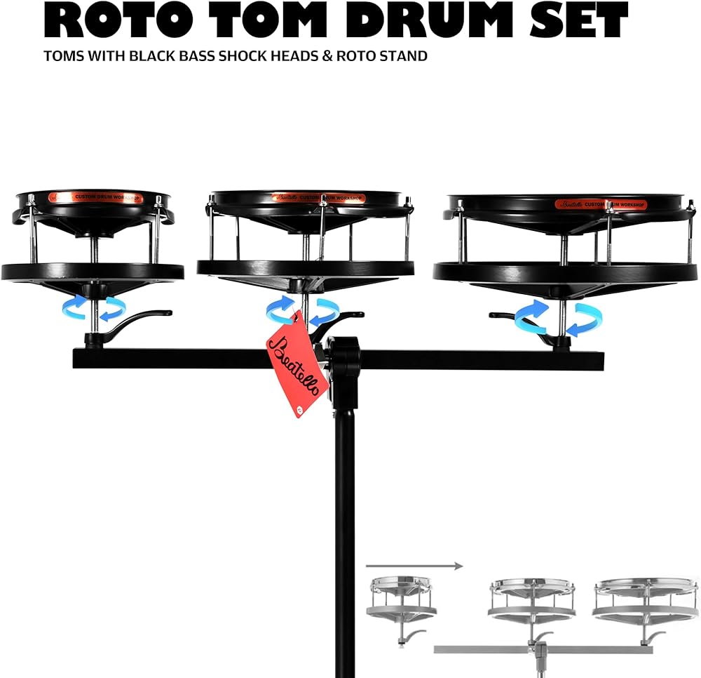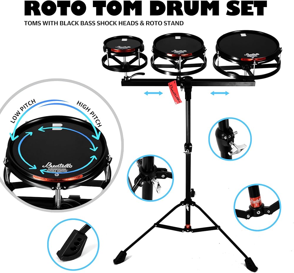 مجموعة طبول روتو توم، ضبط سريع وسهل بدون أدوات، درجة صوت متغيرة، نغمات متنوعة، تركيب سريع، ثلاثة طبول على حامل مخصص، ارتفاع قابل للتعديل. مع حامل 6 بوصات 8 بوصات 10 بوصات