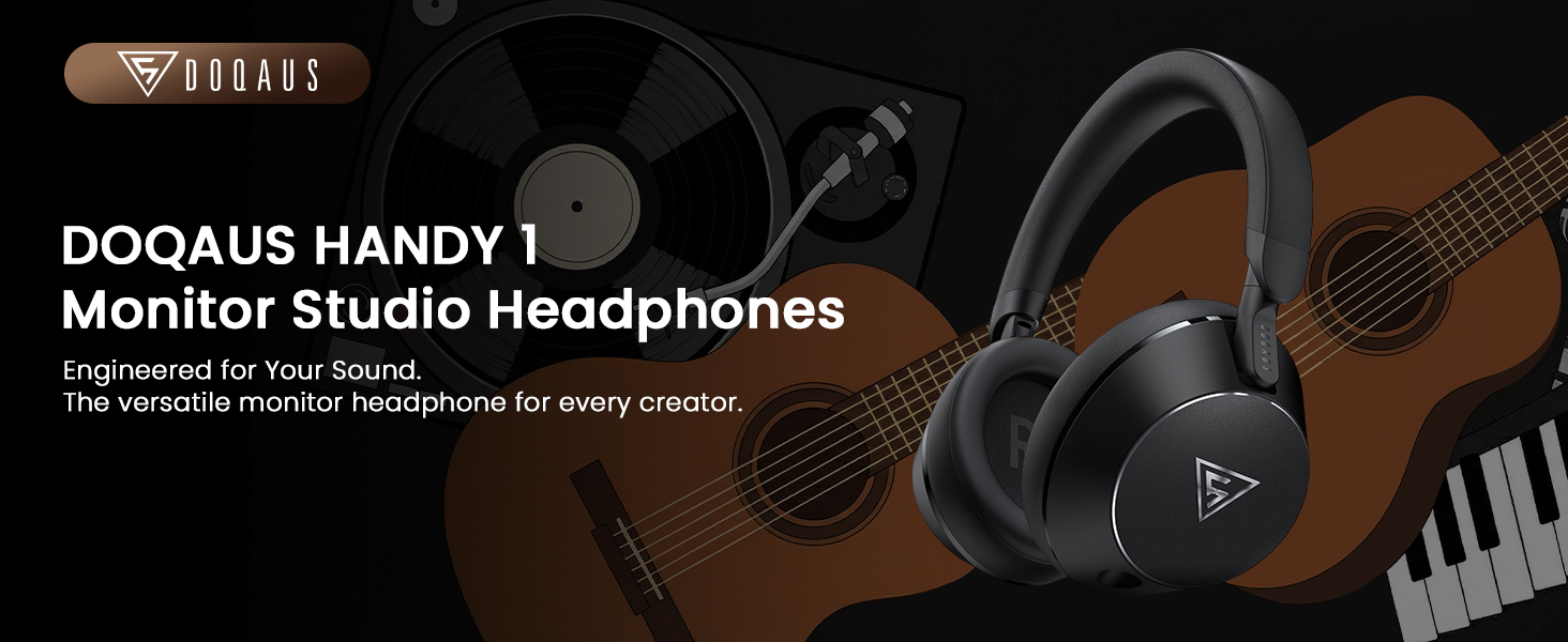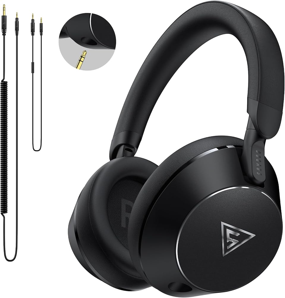 سماعات رأس DOQAUS DJ احترافية سلكية لمراقبة الاستوديو فوق الأذن لتسجيل الموسيقى ومزج سماعات رأس ستيريو للسائقين مقاس 50 مم مع مقبس مزدوج للكمبيوتر المحمول ولوحة المفاتيح والجيتار الكهربائي والبيانو