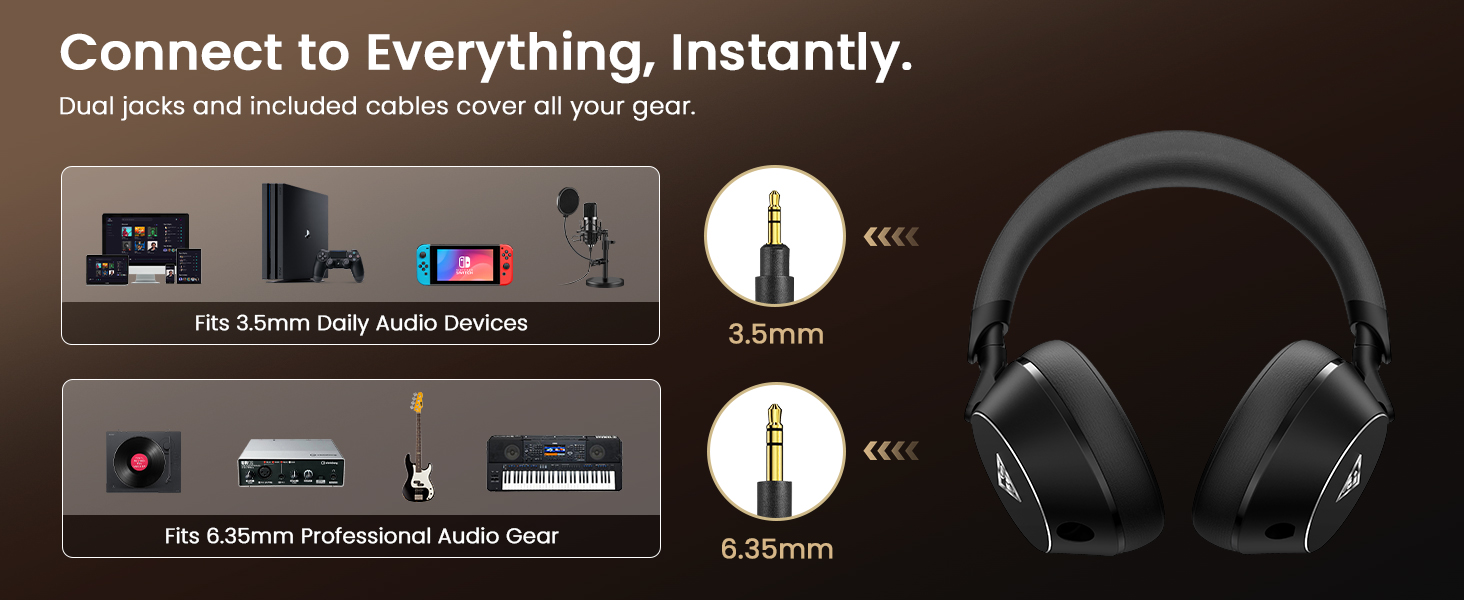 • ✔ اتصال متعدد الاستخدامات مع كابلات طويلة قابلة للفصل: مصممة لتدوم وتتكيف. على عكس موديلات السلك الثابت، تأتي سماعات الرأس aux هذه مع كابلين قابلين للفصل (بما في ذلك سلك ملفوف يمتد إلى 9.8 قدم). مثالي للاتصال ببرج كمبيوتر بعيد أو كمبيوتر محمول أو مقبس سماعة رأس على الطبول الإلكترونية.