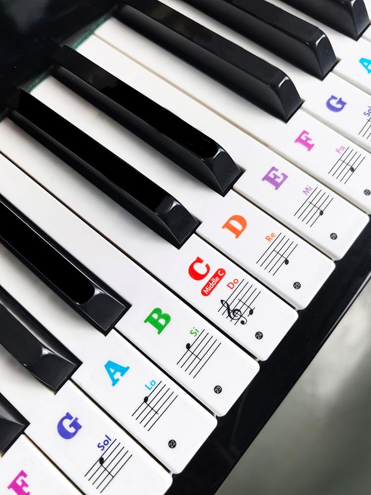 • تناسب جميع لوحات المفاتيح الشائعة (37-88 مفتاحًا) - مصممة لتناسب مجموعة واسعة من أحجام البيانو ولوحة المفاتيح، بما في ذلك 37 و49 و54 و61 و76 و88 مفتاحًا. ملصقات بيانو مثالية للمبتدئين والطلاب وأي شخص يتعلم العزف. سريع وسهل التطبيق على أي تخطيط قياسي.