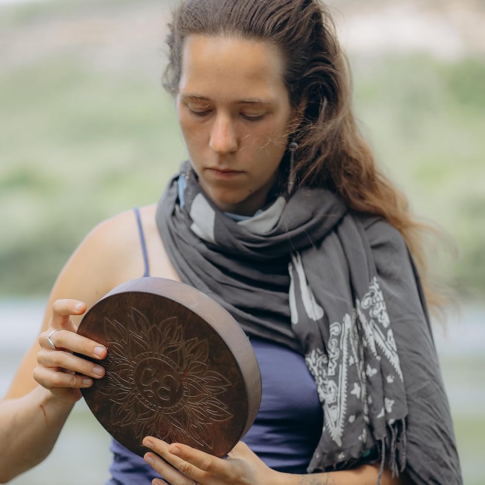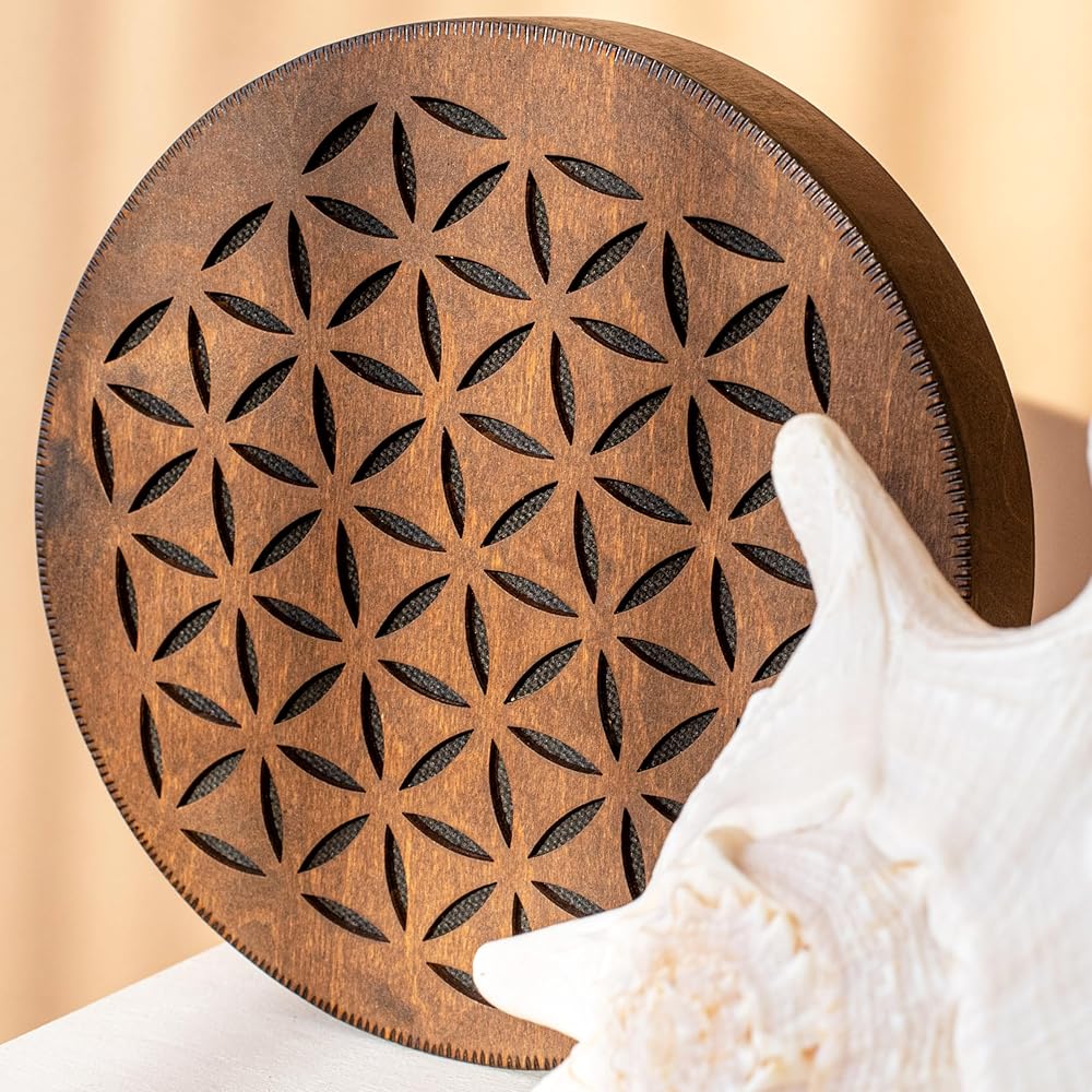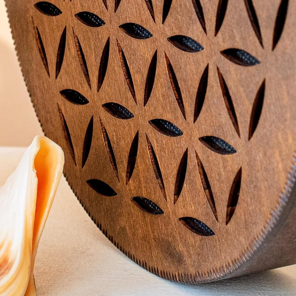 Nazar Drums Rain Disc is a handmade 8.6 inch (22 cm) wooden sound healing instrument that creates a soft rain-like flowing sound through gentle tilting and rotating movement. It is designed for meditation, yoga, relaxation, sound baths, breathwork, and calming home ambience. This Flower of Life & AUM version features a sacred geometry inspired design that gives the instrument a symbolic and meditative handmade look while keeping the same soothing Rain Disc sound. Compared to our Water-Fall Disc, the Rain Disc has a lighter, more delicate rain / creek-like sound character. Each piece is handmade, so slight natural variations make every instrument unique.