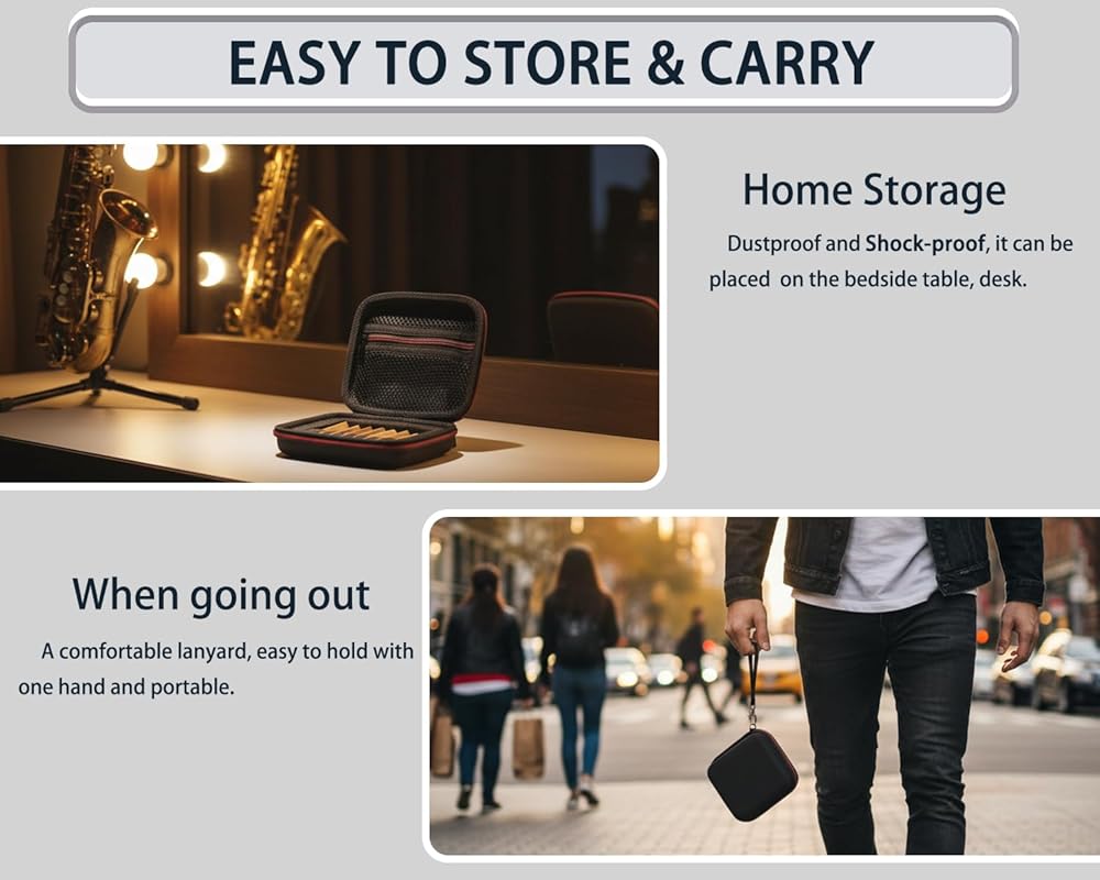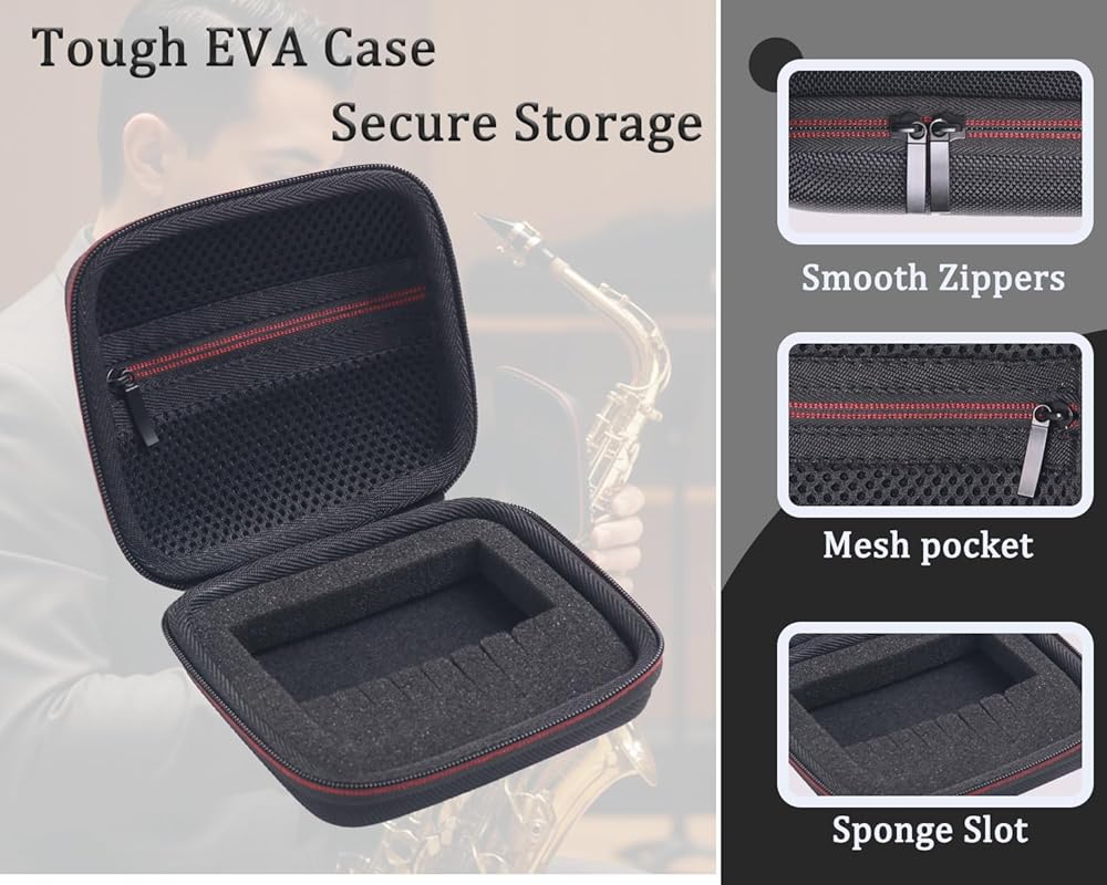 • توافق القصب العالمي: حجم مثالي لتخزين قصب ألتو ساكسفون وقصب تينور الساكسفون وقصب الكلارينيت وقصب الأوبو وقصب الباسون، مما يبقيها منظمة وجاهزة للعب.