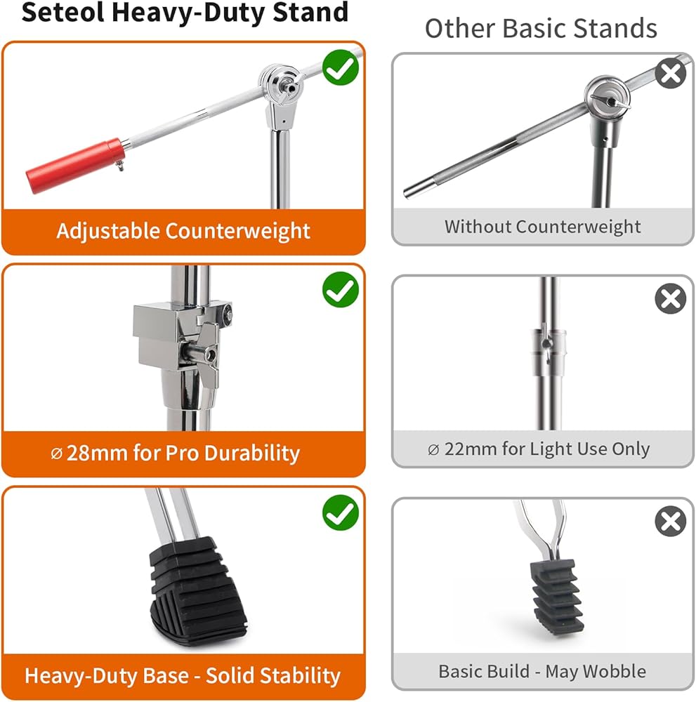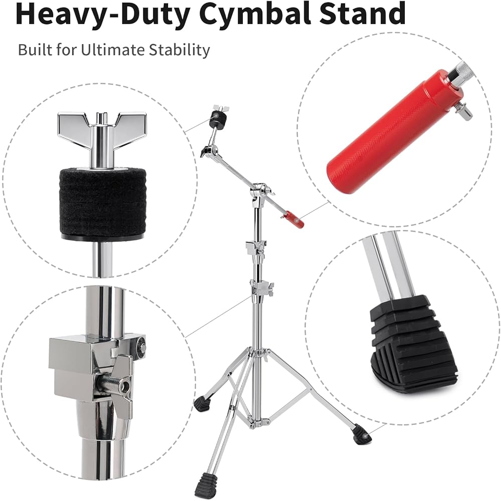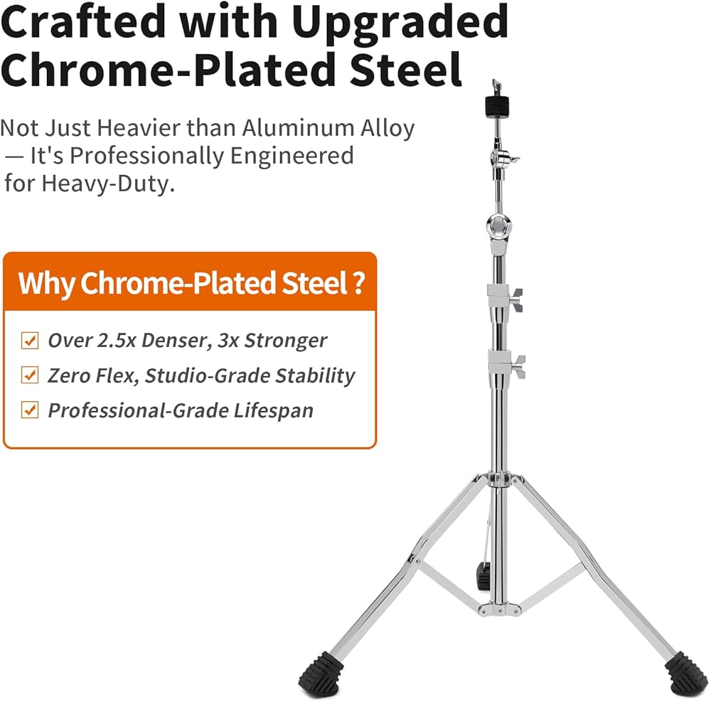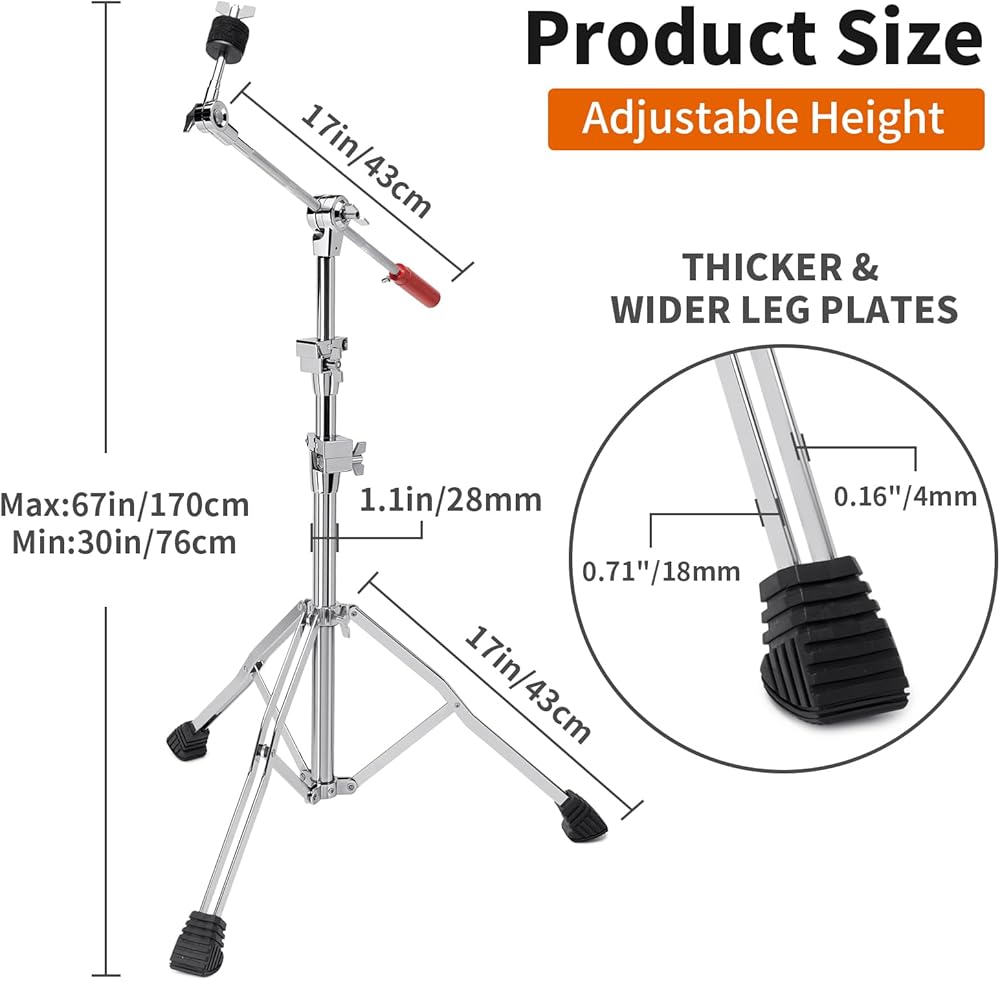 【بناء احترافي عالي التحمل】 مصنوع من الفولاذ المطلي بالكروم عالي التحمل مع أنبوب رئيسي 1.1 بوصة (28 مم) وألواح أرجل مزدوجة المعززة بسمك 0.16 بوصة (4 مم) وعرض 0.71 بوصة (18 مم)، يوفر هذا الحامل الصنجي الاحترافي قوة وثبات استثنائيين - يفوق بكثير حوامل خفيفة الوزن، مصمم ليتحمل الاستخدام الصارم في الاستوديو والمسرح.