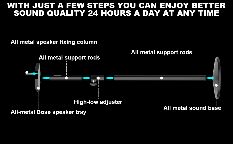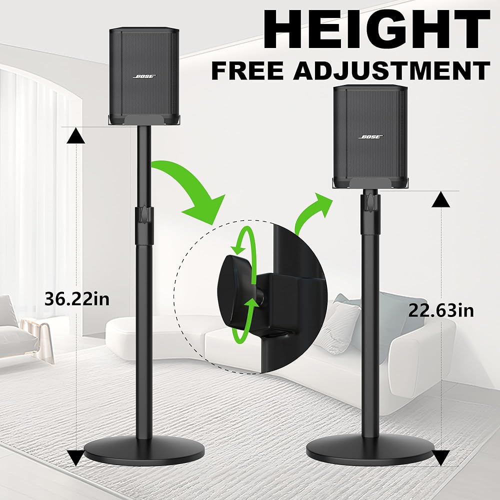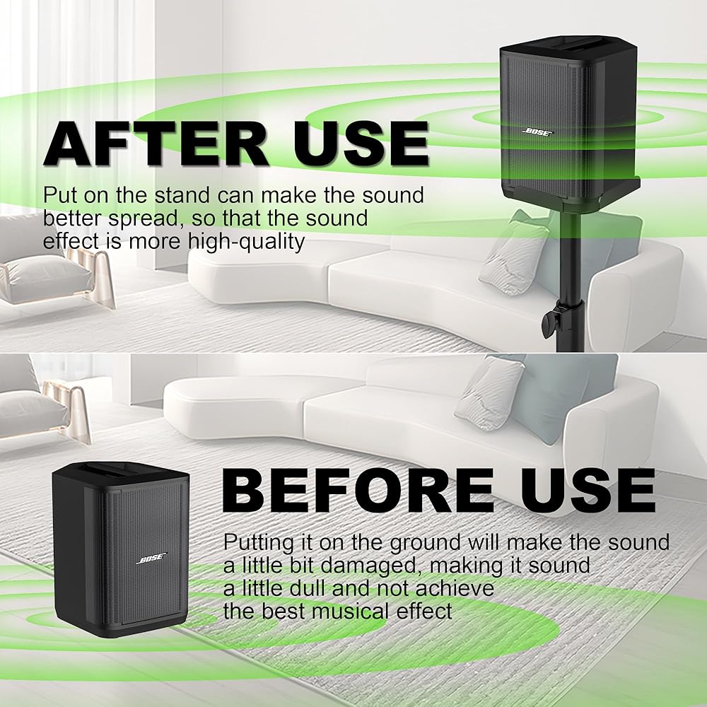 • 【حامل قابل للتعديل لارتفاع Bose S1 Pro Plus】يوفر حامل مكبر الصوت وضعًا مثاليًا لمكبر الصوت حتى 36.22 بوصة، اضبط الارتفاع لرفع مكبر صوت Bose الخاص بك بالقرب من مستوى الأذن، ويحسن بشكل كبير تأثير الستيريو لمكبرات الصوت، مما يوفر تجربة استماع أفضل.