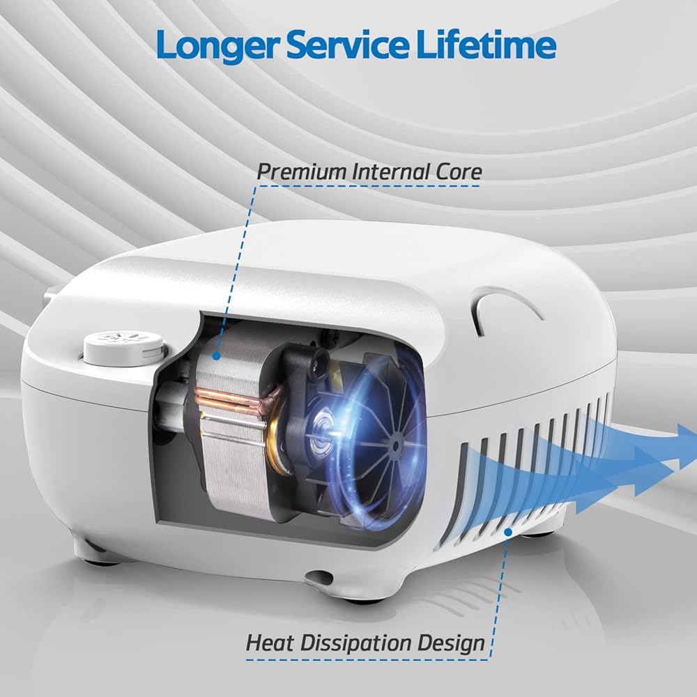【مواد آمنة ومتينة】: مصنوعة من أنابيب هواء بولي كلوريد الفينيل عالية الجودة وآمنة للحيوانات الأليفة وغطاء ABS/PC متوافق حيويًا. مصممة بفتحات متعددة لتبديد الحرارة لأداء ثابت وطويل الأمد يصل إلى 400 ساعة.