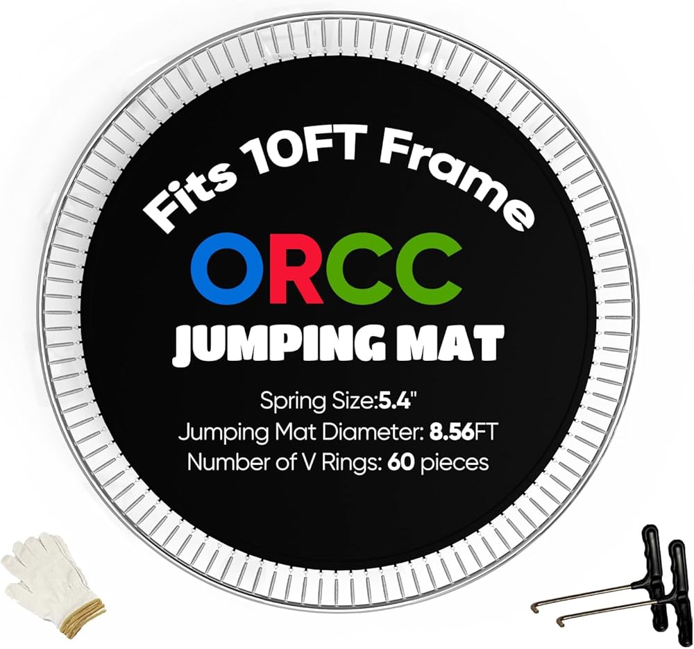 ميزات أمان محسنة: معززة بـ 96 حلقة على شكل حرف V مجلفنة شديدة التحمل وخياطة من 8 صفوف، تضمن هذه السجادة أقصى قدر من القوة والأمان للترامبولين الخاص بك.