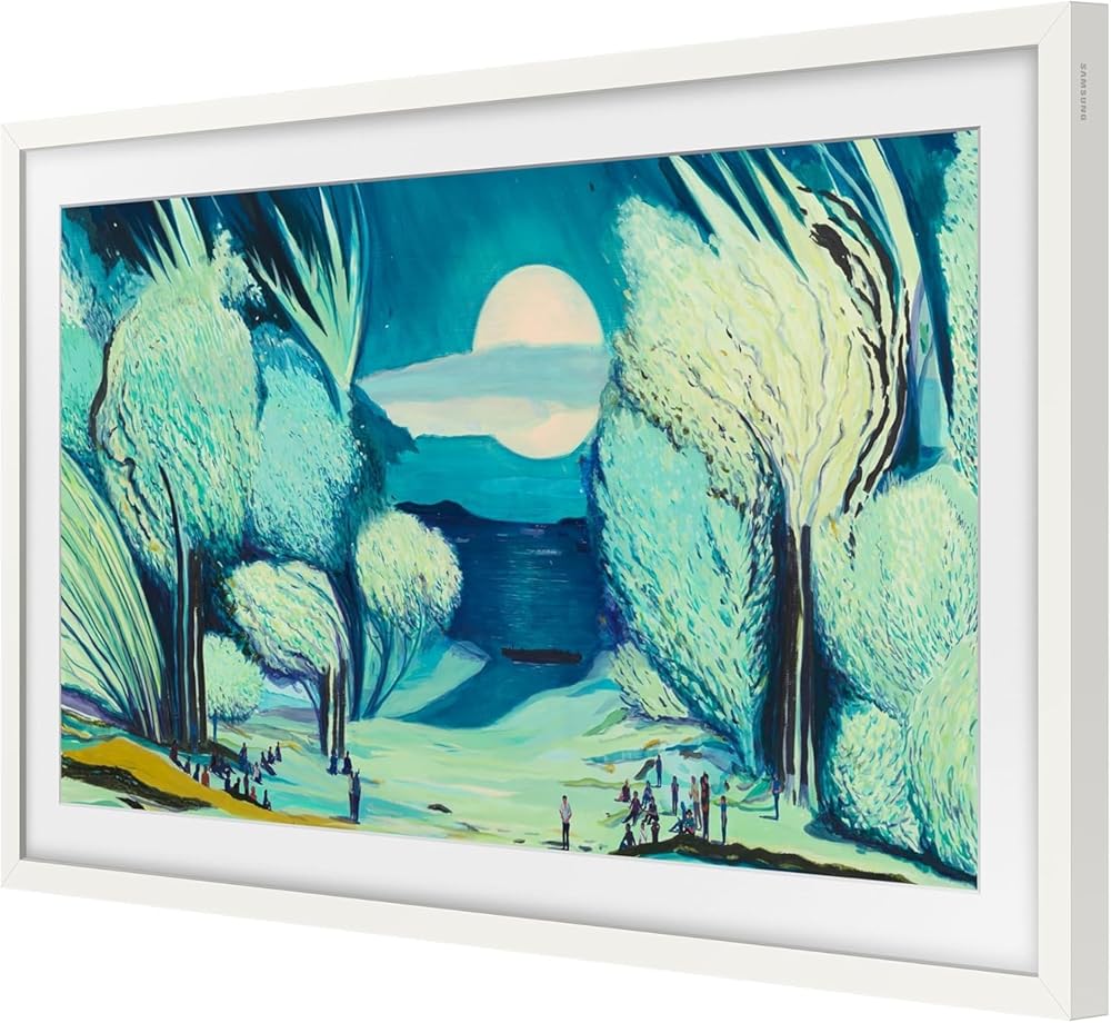 Personalize your 43-inch Samsung The Frame TV with this Modern White customizable bezel. Magnetic snap-on pieces install in minutes, creating a slim gallery-style frame that blends with décor while refreshing the look of your wall-mounted QLED art display.