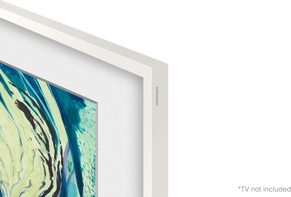 إطار Samsung 43 بوصة قابل للتخصيص 2021-2025، إطار مغناطيسي أبيض حديث VG-SCFA43WTBZA طقم حواف لتلفزيون QLED Art مقاس 43 بوصة، ديكور منزلي سهل التركيب على الحائط بنمط المعرض، مع قطعة قماش