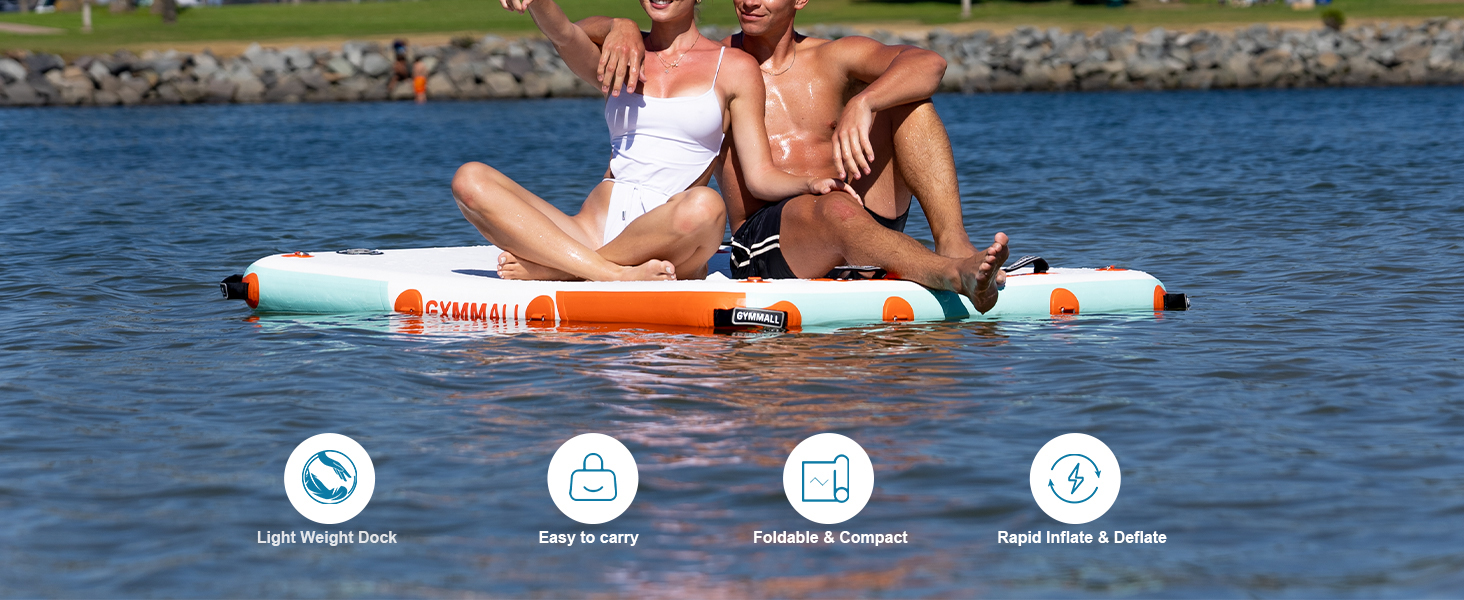 【تصميم دقيق】لقد قمنا بتجهيز المنصة العائمة القابلة للنفخ بحلقات على شكل حرف D معززة من الفولاذ المقاوم للصدأ ومقابض حمل محمولة، والتي تم تصميمها للربط بسرعة وسهولة بأي أرصفة أو قوارب أو مرساة. يمكنك بسهولة ربط أرصفة متعددة أو غيرها من عناصر الرياضات المائية. مع سلم ناعم بثلاث خطوات، من السهل التسلق لأعلى ولأسفل على منصة المياه العائمة عند الاستمتاع في حمام السباحة/البحيرة/البحر.