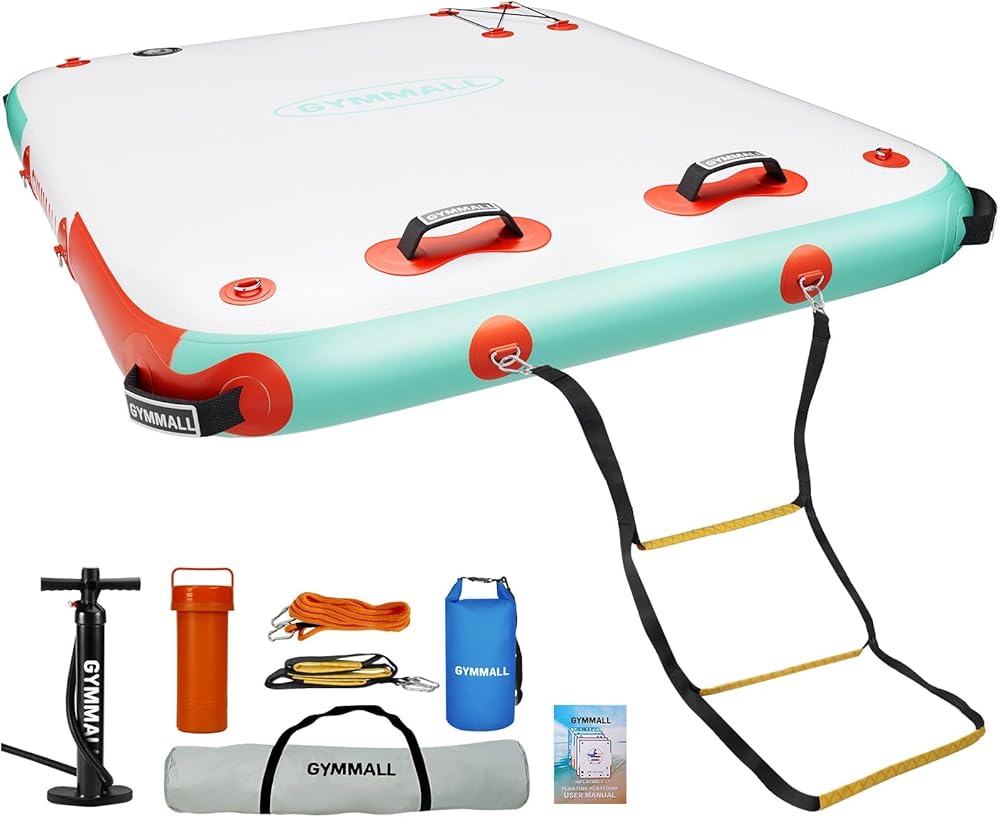 【أحجام وأنماط متعددة】منصة المياه القابلة للنفخ من GYMMALL تحتوي على مجموعة متنوعة من الأحجام والأنماط لتلبية احتياجاتك. 6 أقدام * 5 أقدام، يمكن أن تستوعب 3-5 أشخاص، ويزن حوالي 455 رطلاً؛ 8 أقدام * 6 أقدام، يمكن أن تستوعب 4-6 أشخاص، ويزن حوالي 675 رطلاً؛ 8 أقدام × 8 أقدام و10 أقدام × 6 أقدام، يمكن أن تستوعب 5-7 أشخاص، ويزن حوالي 925 رطلاً؛ 10 قدم * 8 قدم و12 قدم * 6 قدم، يمكن أن تستوعب 6-8 أشخاص، ويزن حوالي 1100 رطل.