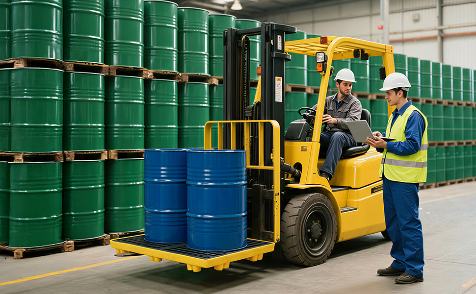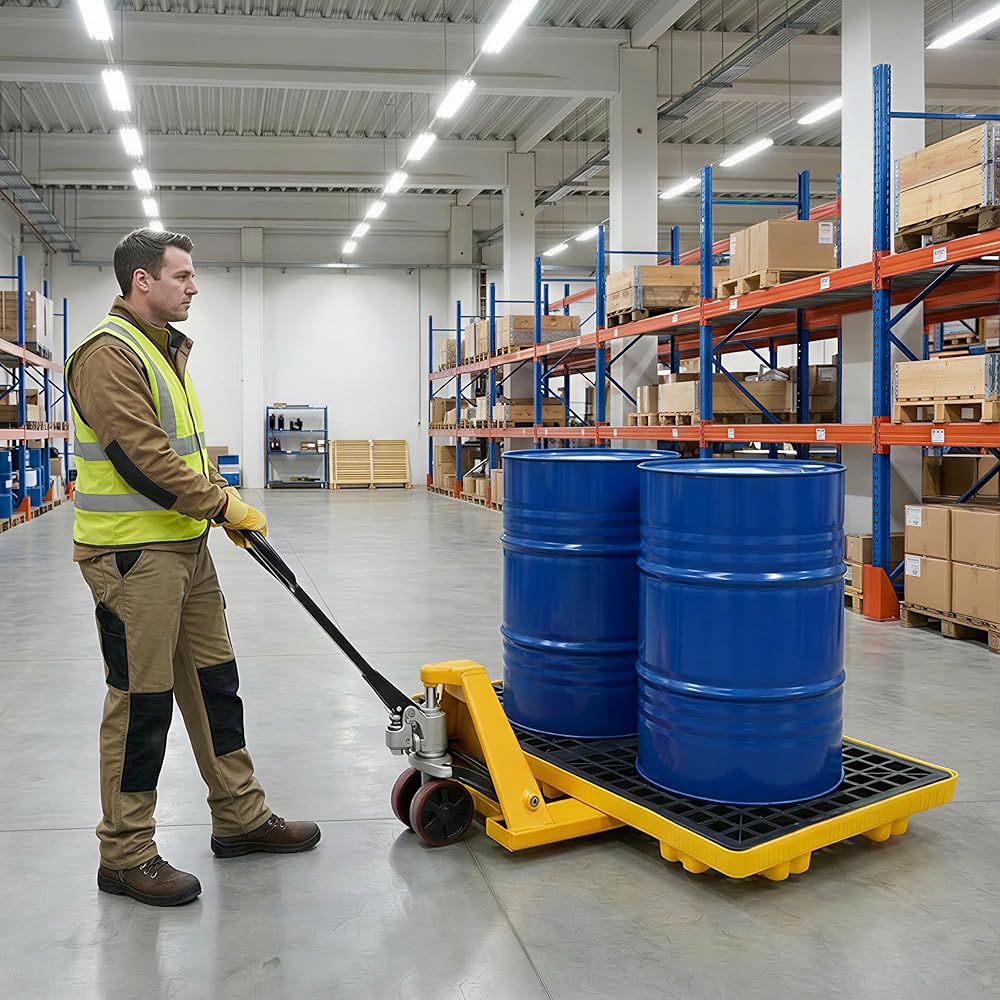 دعم التحكم في الانسكاب الخاص بإدارة السلامة والصحة المهنية (OSHA/EPA): 4 جدران عميقة تخلق حوضًا يلتقط القطرات اليومية والتسريبات والانسكابات البسيطة من الطبول والحاويات؛ يساعد منفذ الصرف المائل على استعادة السوائل بسرعة للتخلص منها بشكل سليم. مصمم لدعم ممارسات منع الانسكاب - تأكيد حجم الاحتواء الثانوي المطلوب لتطبيقك المحدد، وظروف الموقع، واللوائح المحلية.