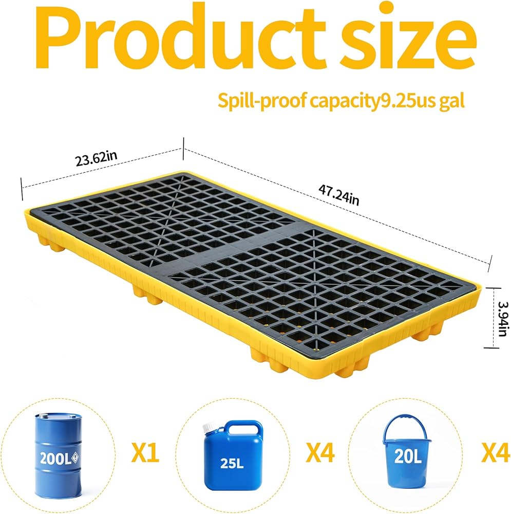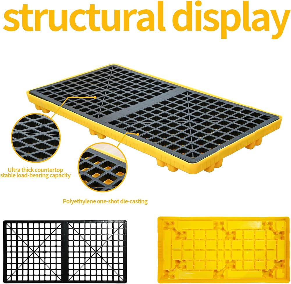 المقاومة الكيميائية شديدة التحمل: سعة تحميل 2000 رطل من مادة البولي إيثيلين الصناعية لاحتواء الانسكابات؛ هيكل مثبت بالأشعة فوق البنفسجية يقاوم الزيوت والمذيبات والمواد الكيميائية القاسية للاستخدام الداخلي والخارجي طويل الأمد، بدون بهتان أو تشقق.