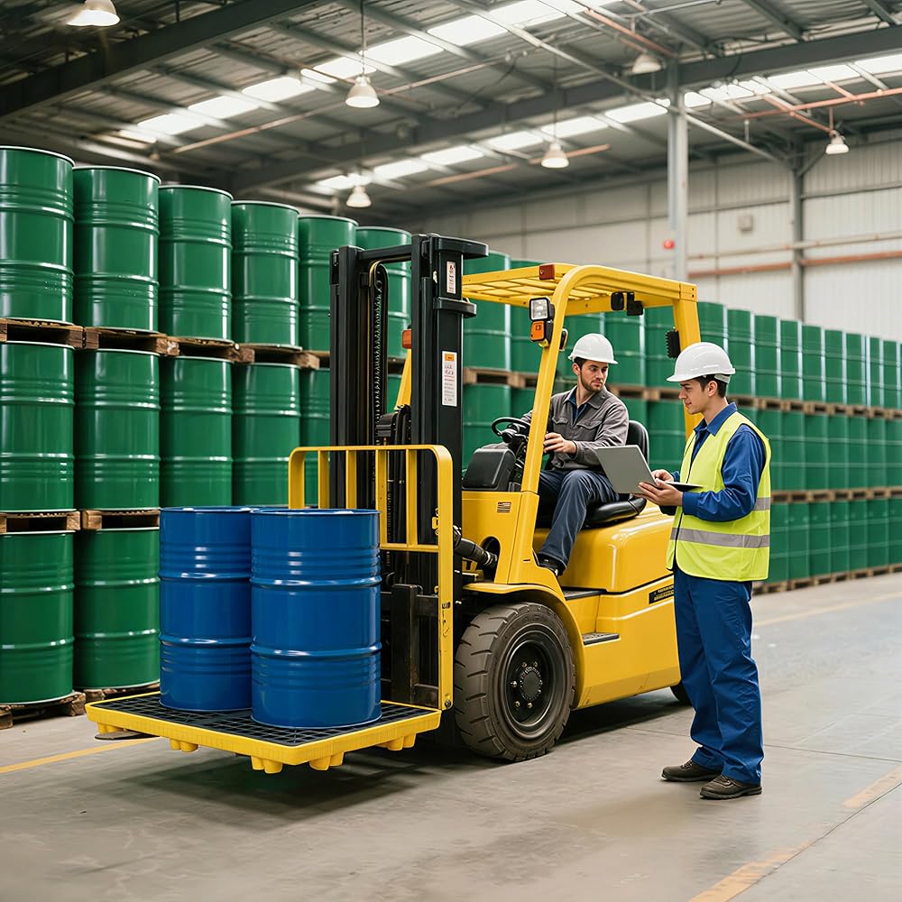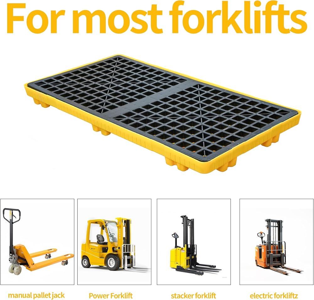 تصميم مريح للرافعة الشوكية: جيوب رافعة شوكية مدمجة لنقل رافعة البليت بشكل آمن (بدون دفع يدوي)؛ سطح شبكي غير قابل للانزلاق يحافظ على ثبات الطبول أثناء الحركة؛ حواف مشطوفة تمنع مخاطر التعثر من أجل التعامل الآمن.