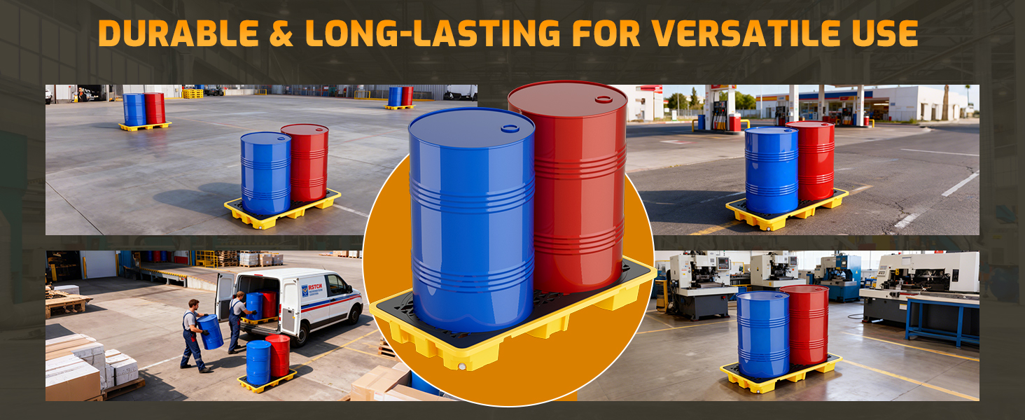 𝗗𝘂𝗿𝗮𝗯𝗹𝗲 & 𝗦𝗮𝗳𝗲𝘁𝘆-𝗠𝗮𝘁𝗲𝗿𝗶𝗮𝗹: صينية الاحتواء مصنوعة من البولي إيثيلين عالي الكثافة (HDPE) للخدمة الشاقة للحصول على قوة فائقة & أداء طويل الأمد. لون مشرق ومقاوم للبهتان يعزز الرؤية، وغير سام وخالي من الروائح، ويتجاوز معايير السلامة في مكان العمل