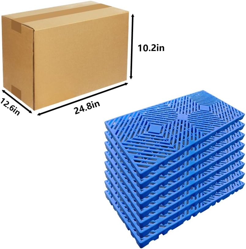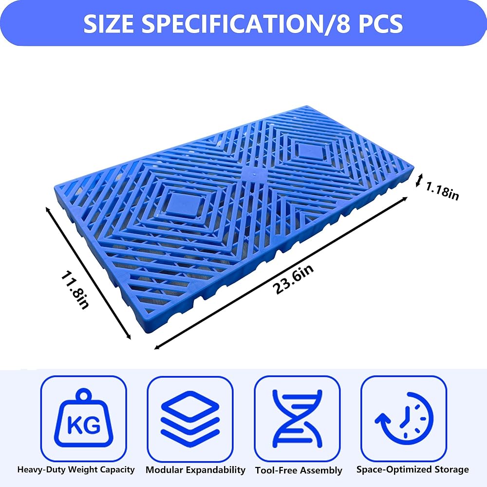 منصات بلاستيكية 8 قطع - 23.6 بوصة × 11.8 بوصة × 1.18 بوصة، وسادات تخزين مقاومة للماء خفيفة الوزن، للاستخدام الداخلي/الخارجي للمطبخ، والطابق السفلي، والمرآب، والمستودع، والاستخدام الصناعي