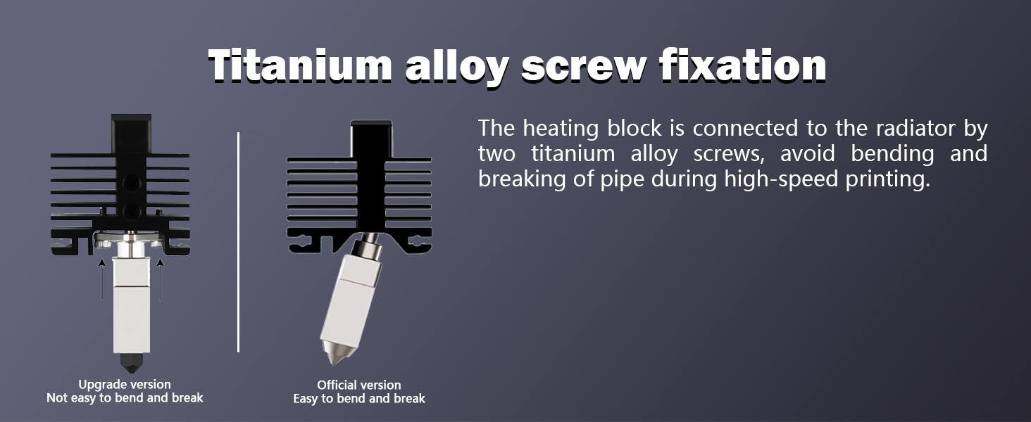 • ملحقات طابعة ثلاثية الأبعاد عالية الجودة: تتضمن أجزاء مجموعة الأطراف الساخنة المجمعة: كتلة المشتت الحراري، فوهة عالية الدقة 0.4 مم، موصلات، أنبوب الحلق، كتلة السخان، جورب السيليكون، سخان خرطوشة وثرمستور لطباعة أكثر سلاسة ونماذج مطبوعة ثلاثية الأبعاد أفضل.