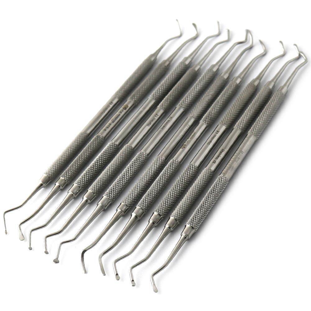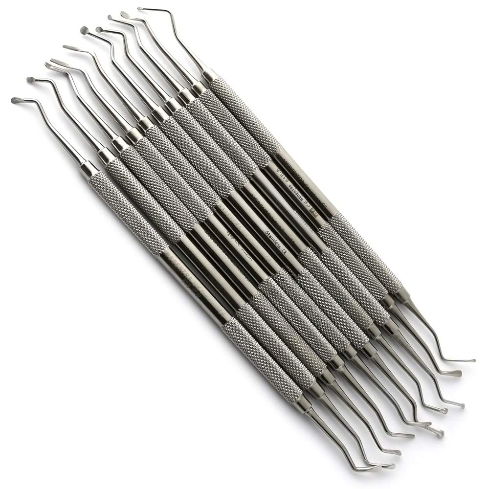 مجموعة من 10 ملاعق للأسنان، أدوات ترميم وتجويف الأسنان وإزالة التسوس، أدوات مزدوجة الأطراف