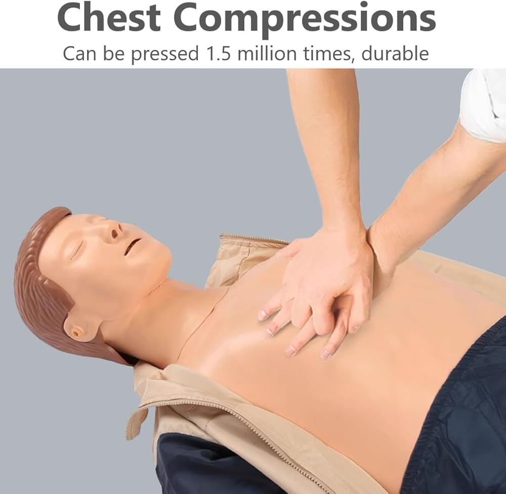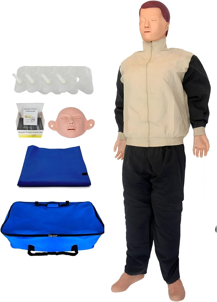 【المواد والوظيفة: جلد الوجه الدمي CPR وجلد الرقبة وجلد الصدر مصنوع من مادة مطاطية مختلطة من المطاط اللدن بالحرارة. تمتلئ الأرجل بمرونة عالية وإسفنجة عالية الكثافة. الضغط على الصدر (سوف يرتد الصدر تلقائيًا عند الضغط عليه)؛ النفخ الاصطناعي (الصدر الاصطناعي سيرتفع وينخفض تلقائيًا)؛ يمكن تدوير الرأس 180 درجة لليسار واليمين. يمكن الضغط على النموذج عالي الجودة بشكل متكرر لأكثر من 1.5 مليون مرة