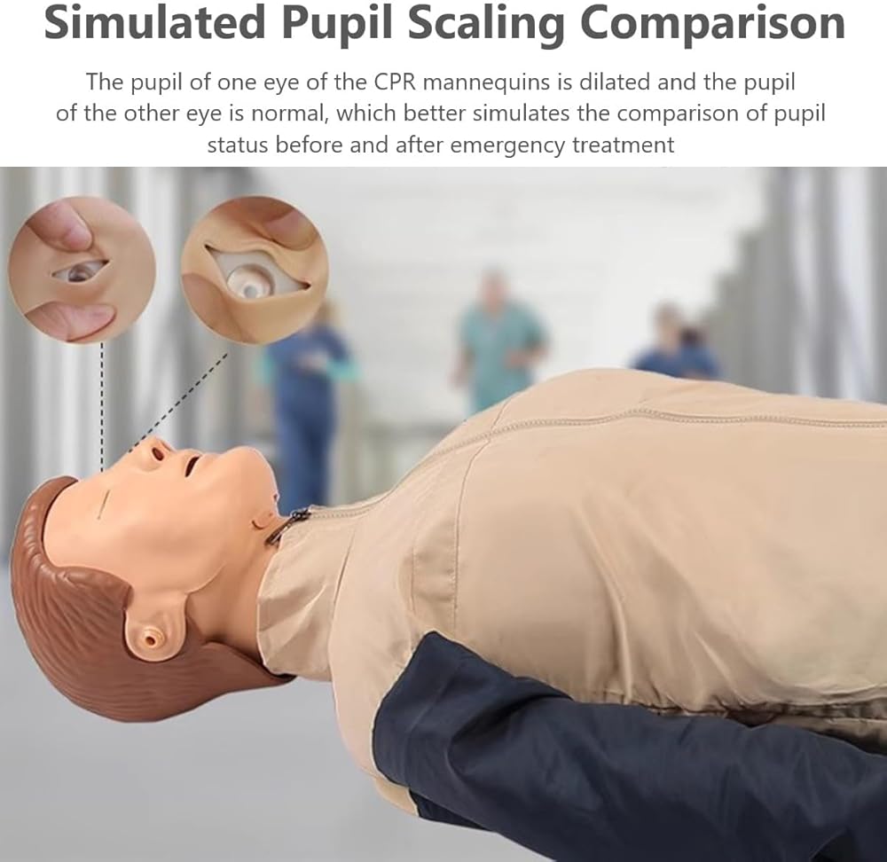 【محاكاة واقعية】تتمتع دمى الإنعاش القلبي الرئوي بتأثير محاكاة واقعي للغاية، وتحاكي تشريح الصدر البشري والاستجابة الفسيولوجية، مما يسمح للمدرب بالشعور بضغط الصدر وعمليات التنفس الاصطناعي بشكل أكثر واقعية وفتح مجرى الهواء وتباين حدقة العين. الأرجل قابلة للفصل، ويمكن تبديل نصف الجسم والجسم بالكامل بحرية