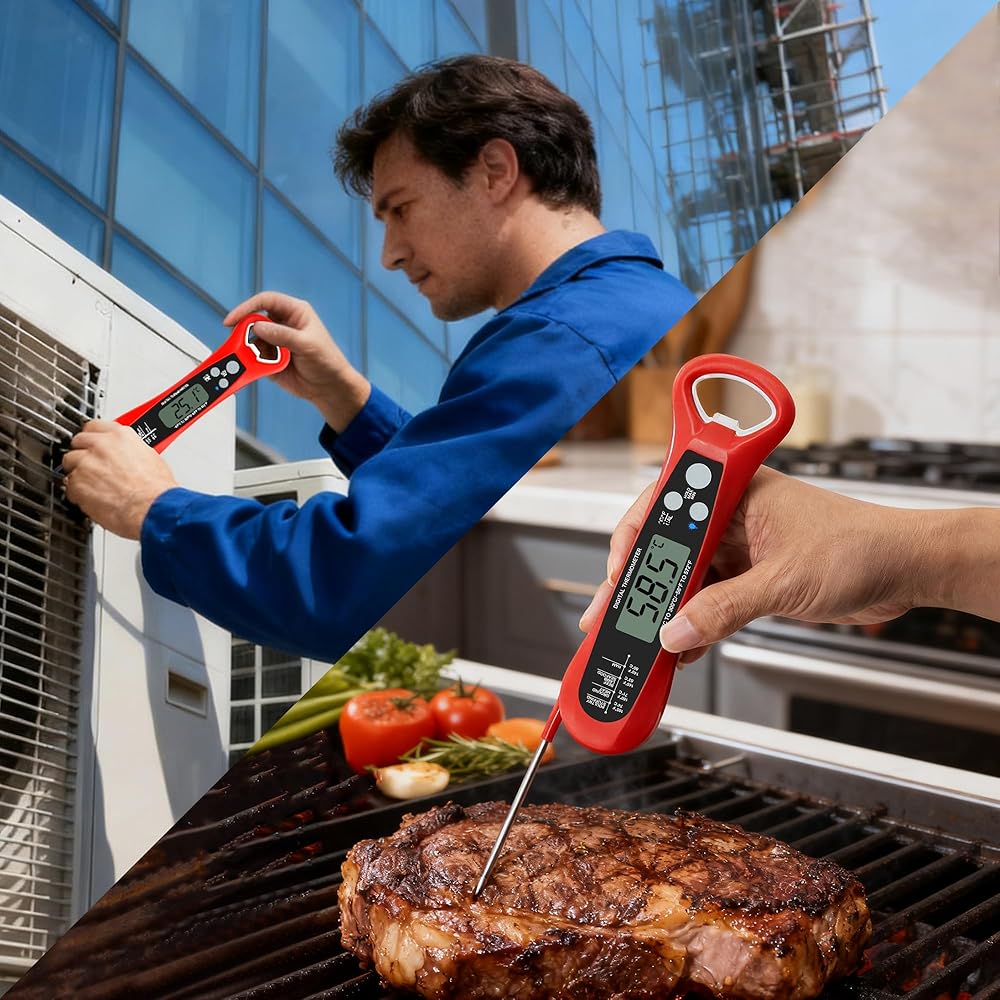 ميزان حرارة رقمي للجيب قابل للطي، قياس درجات الحرارة من -50 إلى 300 درجة مئوية، لمناطق التدفئة والتهوية وتكييف الهواء والتبريد وخدمة الطعام
