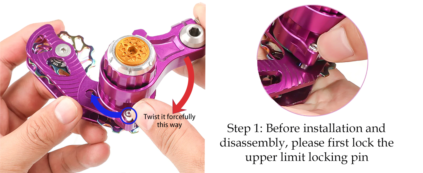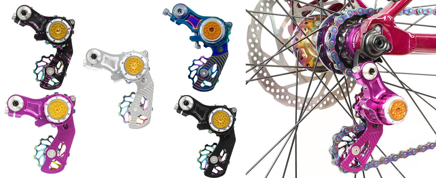 【سهلة التركيب وتصميم قابل للتعديل】سريعة التركيب بهيكل مدمج وقابل للتعديل يسمح بضبط دقيق لشد السلسلة للحصول على الأداء الأمثل لمجموعة نقل الحركة. متوفر بخيارات ألوان متعددة: أسود، فضي، ملون، أرجواني، وأرجواني أسود.