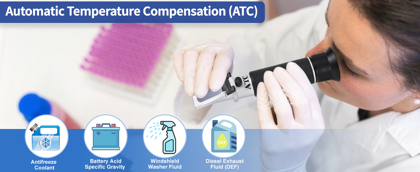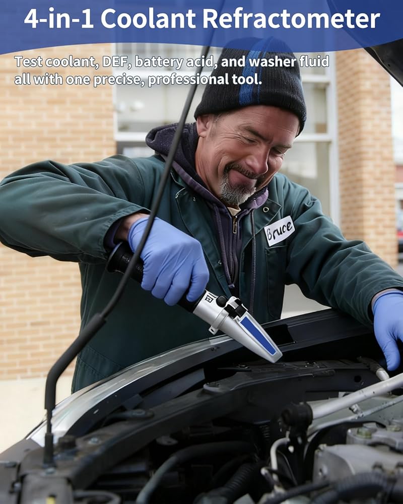 【مقياس انكسار سائل تبريد السيارة المضاد للتجمد 】يقيس مقياس انكسار سائل التبريد 4 في 1 بدقة الإيثيلين جلايكول، والبروبيلين جليكول، وسائل عادم الديزل (DEF)، وحمض البطارية، وسائل غسيل الزجاج الأمامي - كل ذلك في جهاز واحد. مثالي للميكانيكيين وسائقي الشاحنات وعشاق السيارات الذين يحتاجون إلى اختبار سريع وموثوق للسوائل لحماية كاملة للمركبة.