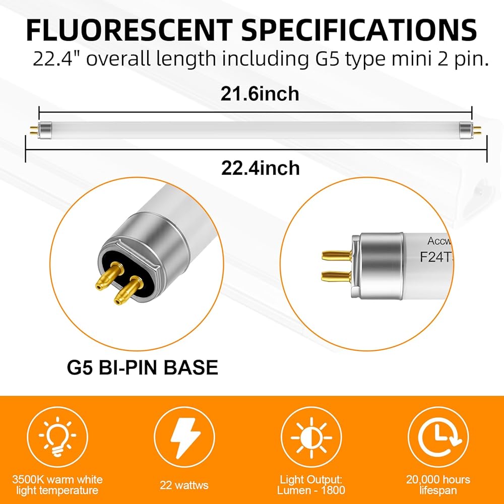 - الطول الإجمالي 22 بوصة بما في ذلك دبوس G5 الصغير 2. يرجى التأكد من المقاس قبل الطلب، والتأكد من حصولك على المصابيح ذات الحجم الصحيح