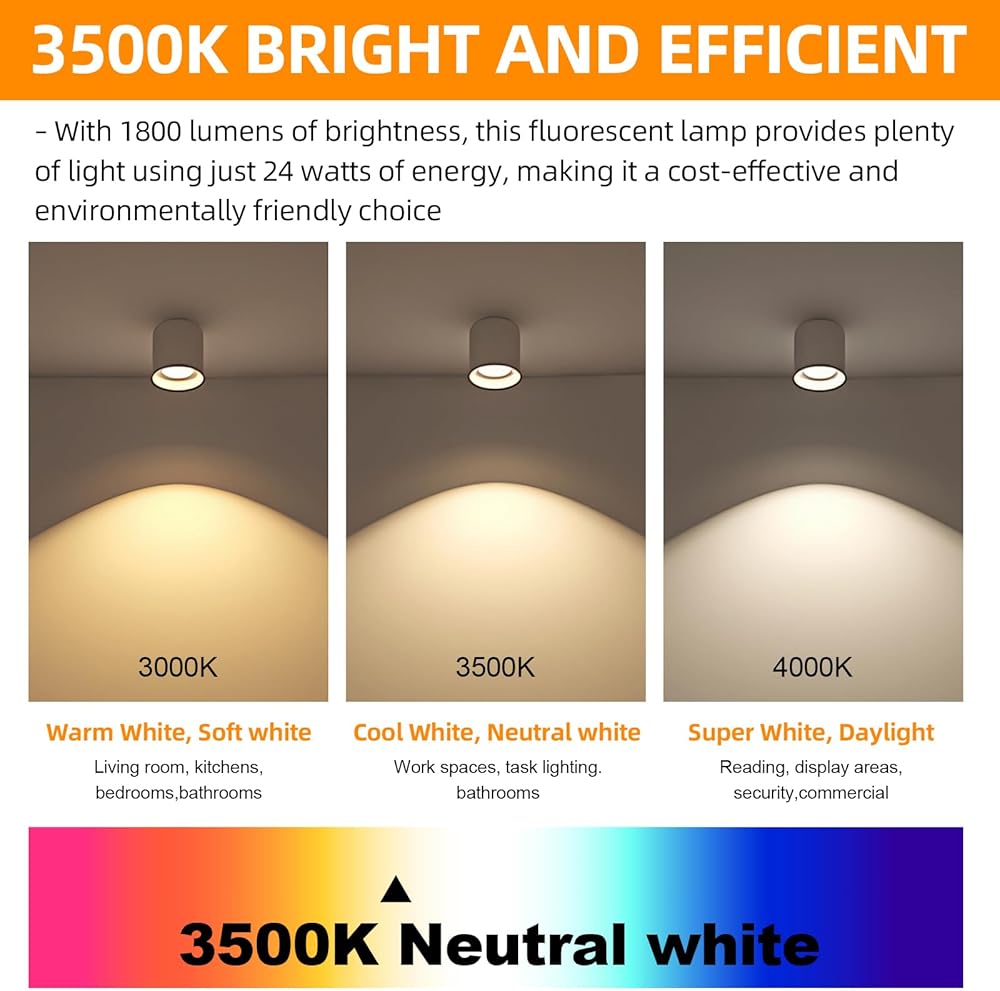 - درجة حرارة الضوء الأبيض الدافئ 3500 كلفن، ضوء ساطع وناعم يقلل من إجهاد العين، مما يجعله مثاليًا لخلق مزاج مريح