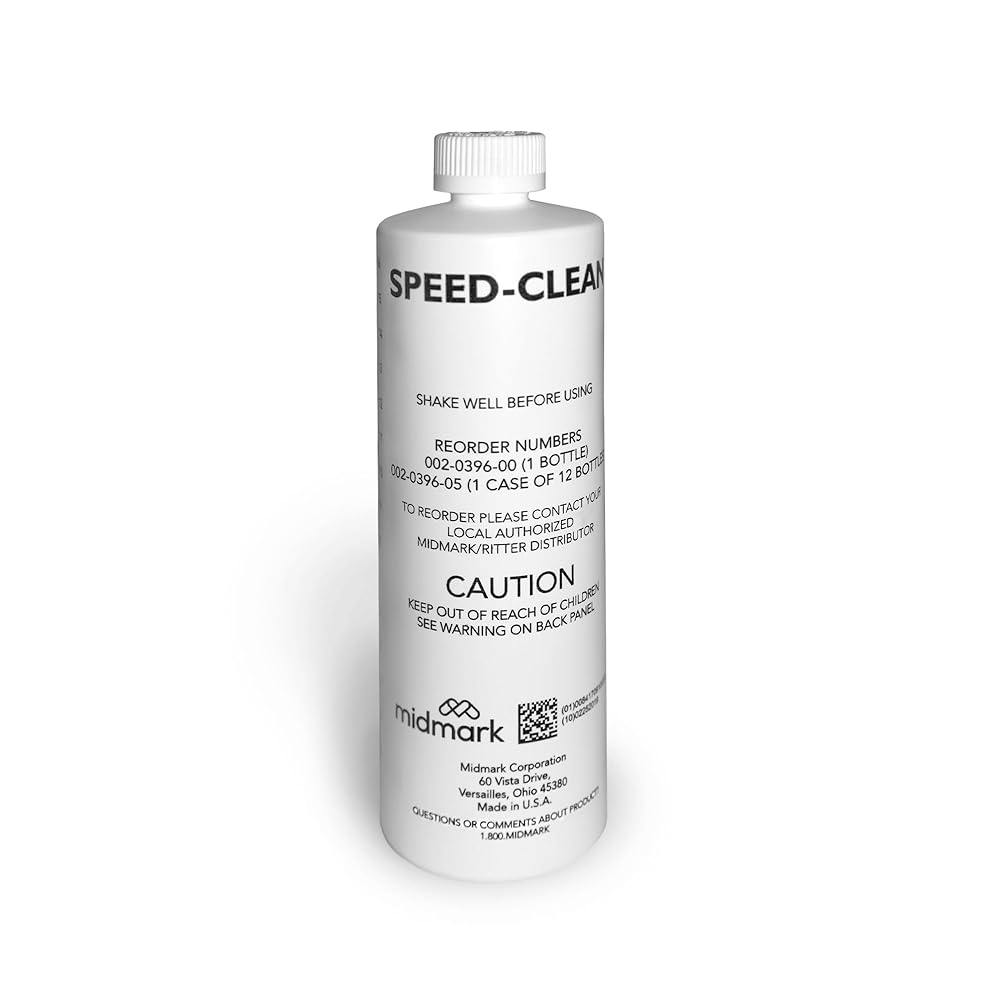 The Midmark 002-0396-00 SpeedClean Solution is a ready-to-use cleaning product designed to support routine maintenance of autoclaves and sterilizer equipment. Supplied in a 16 oz bottle, it helps remove residue buildup that can impact equipment performance when used as part of regular cleaning protocols. This genuine Midmark solution supports consistent upkeep across care environments.