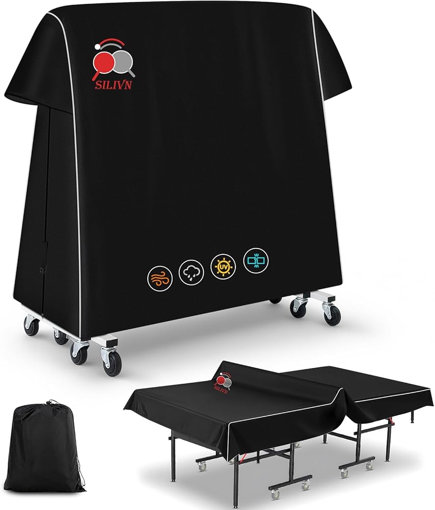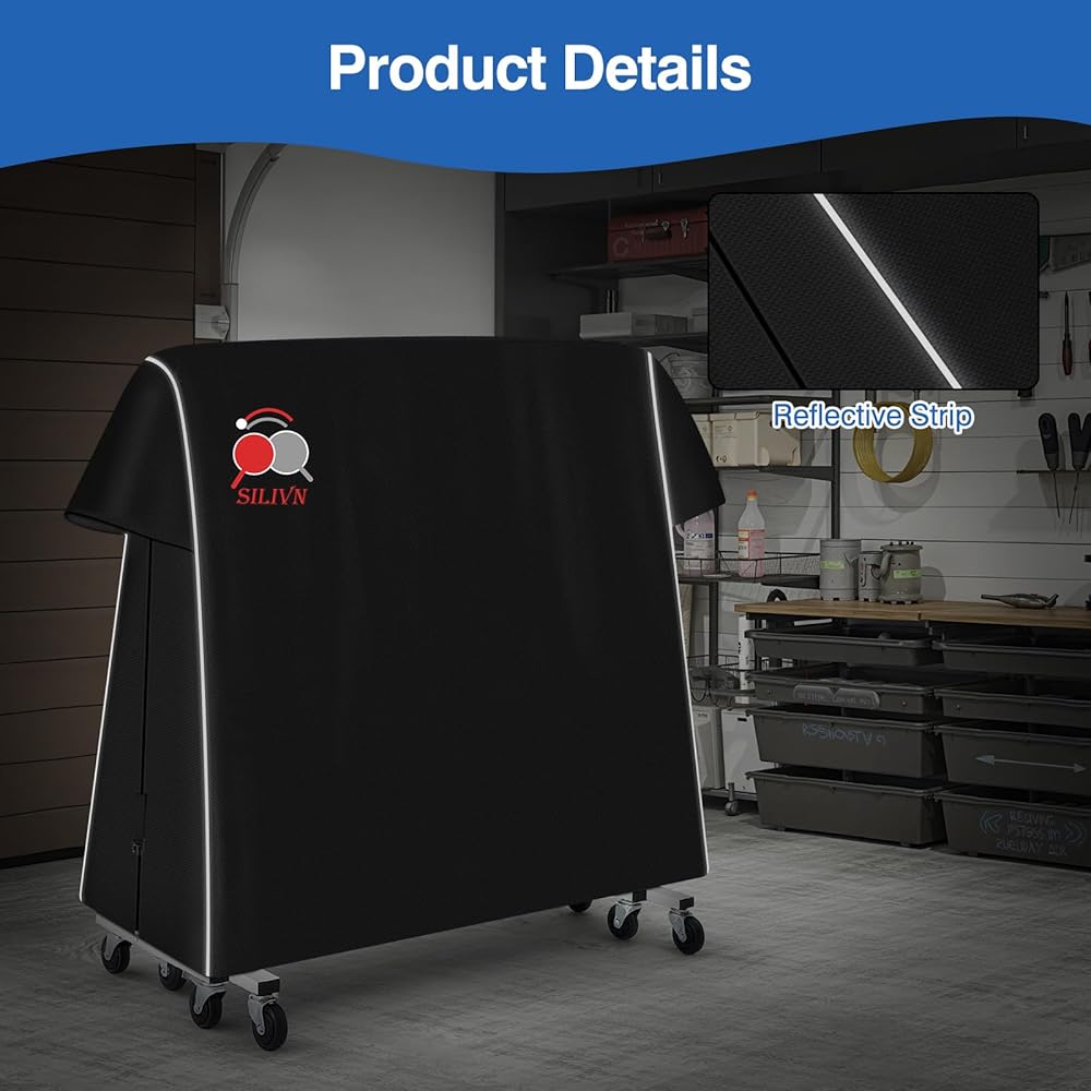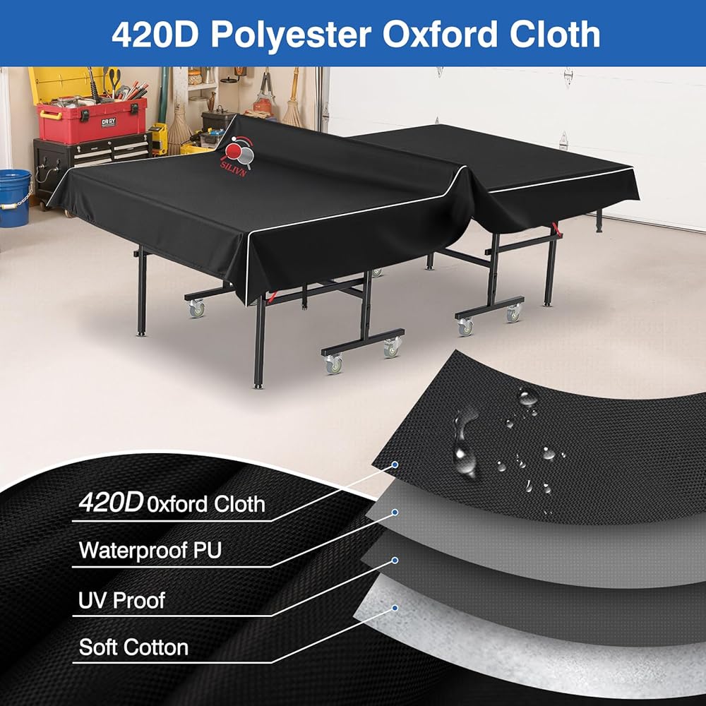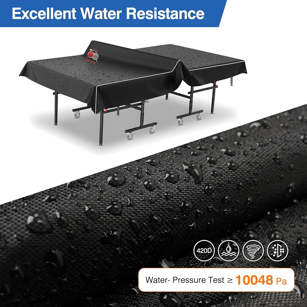 【غطاء خارجي واقٍ من نسيج أكسفورد مع بطانة قطنية وغطاء خارجي واقٍ لجميع الأحوال الجوية】 يمنع غطاء طاولة بينج بونج بشكل فعال تراكم الرطوبة، ويحمي سطح الطاولة من أضرار الماء. مصنوع من قماش أكسفورد عالي التحمل 420D مع بطانة قطنية وطلاء بولي يوريثان معزز، يوفر هذا الغطاء مقاومة استثنائية للماء مع حجب الأشعة فوق البنفسجية والغبار وتراكم الثلج. حماية على مدار العام تحمي طاولتك من الطقس القاسي - بما في ذلك التعرض لأشعة الشمس والمطر والرياح والرمل والصقيع.