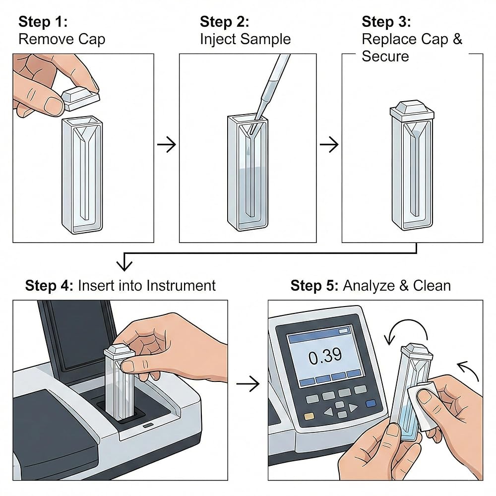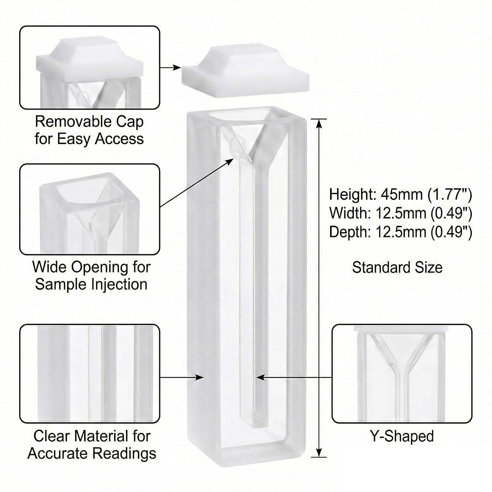 【Standard 10mm Optical Path】Features a universal 10mm path length with two polished clear sides for consistent light passage. Compatible with most spectrophotometers and optical instruments.