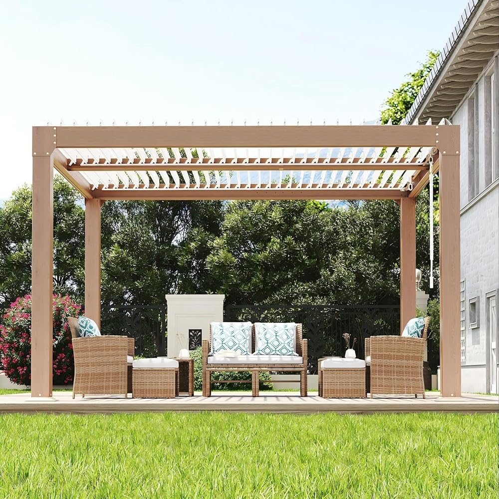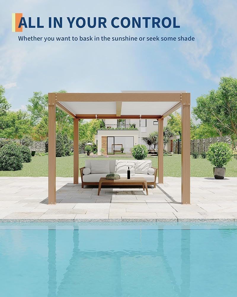• Adjustable Louvered Roof: Effortlessly control sunlight and airflow with louvers that adjust from 0° to 90°. Perfect louvered pergola for creating shade, stargazing, or relaxing outdoors with family and friends.