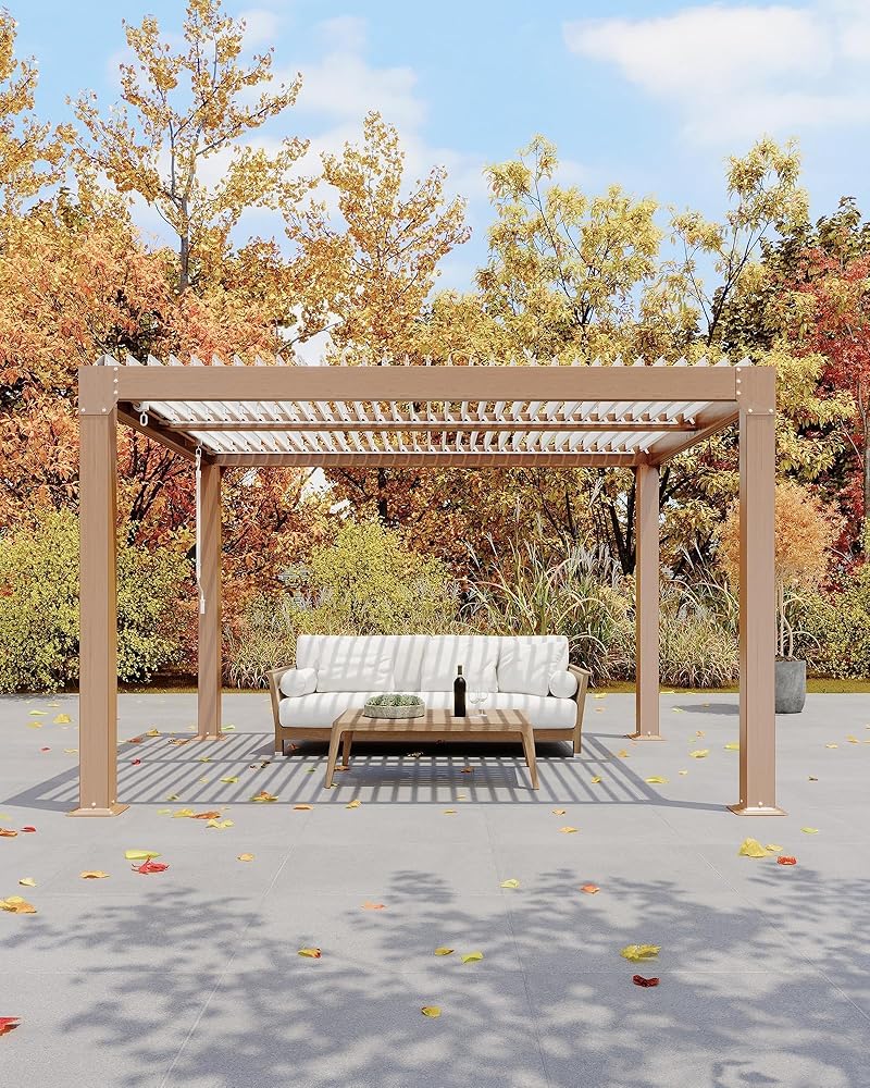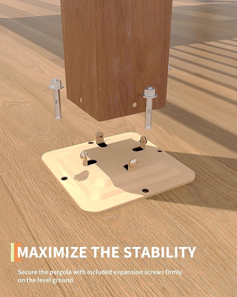 • Reinforced Frame for All Weather: Withstands winds over 72 mph and heavy snow loads. This louvered pergola includes pre-drilled bases and corrosion-proof hardware to ensure sturdy installation on wood decks or concrete surfaces.