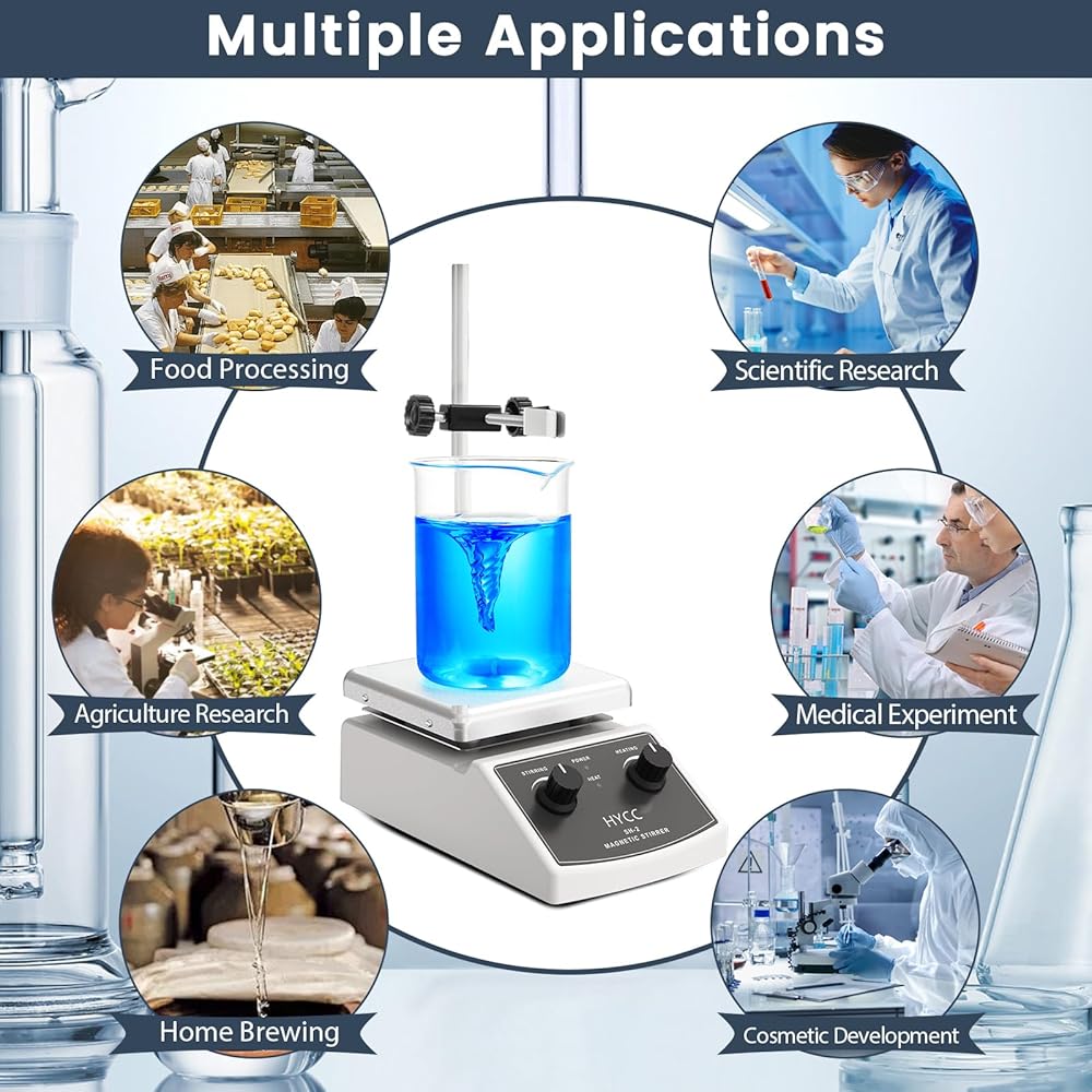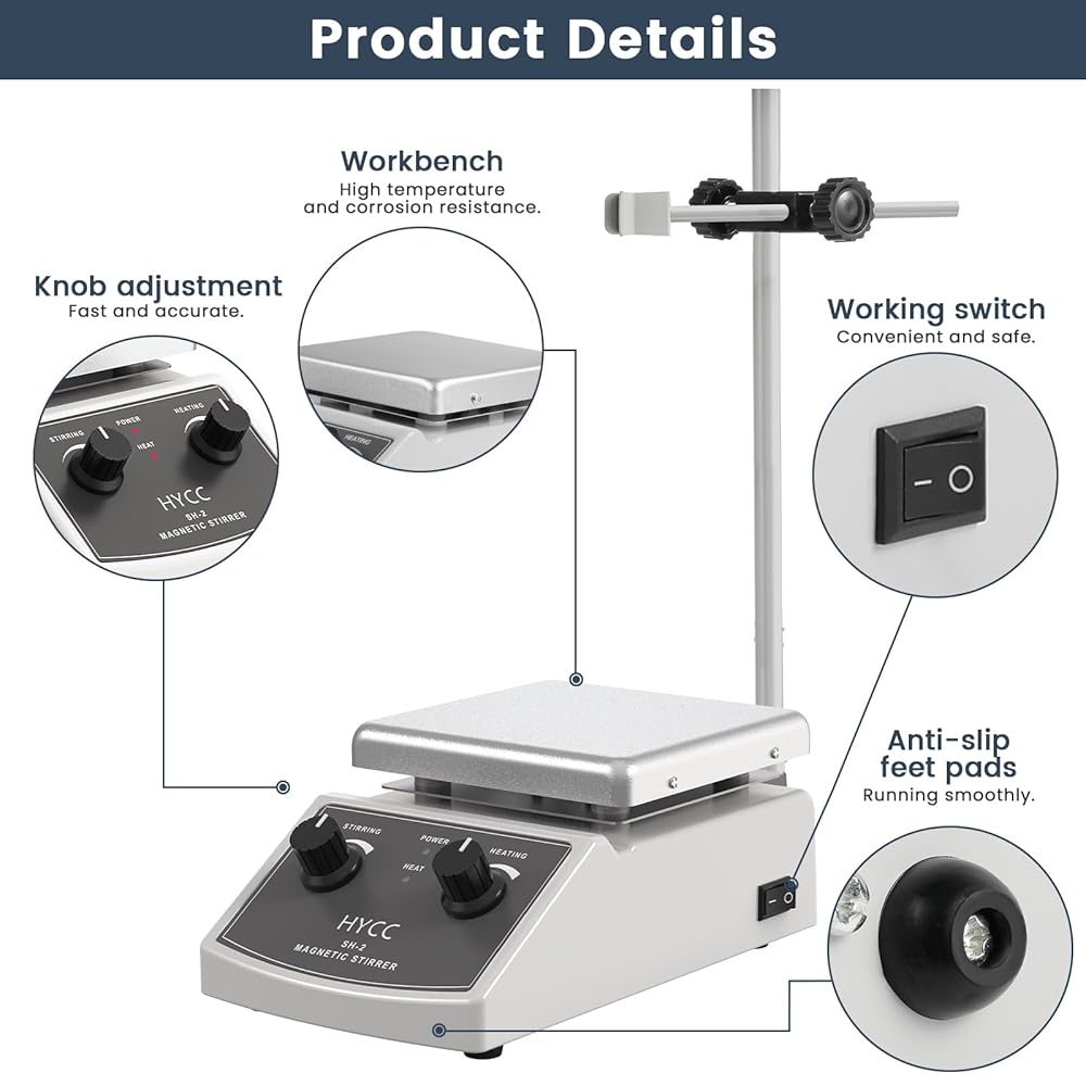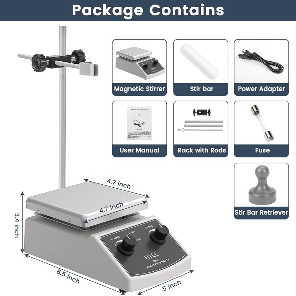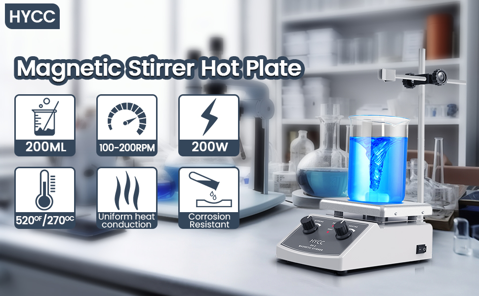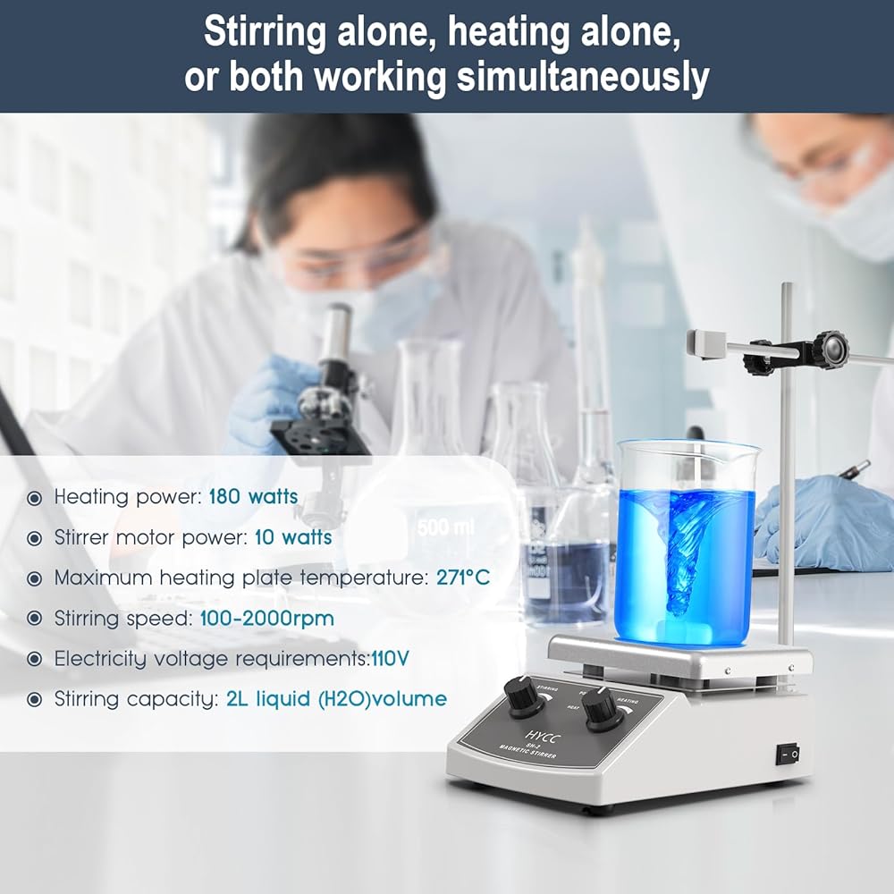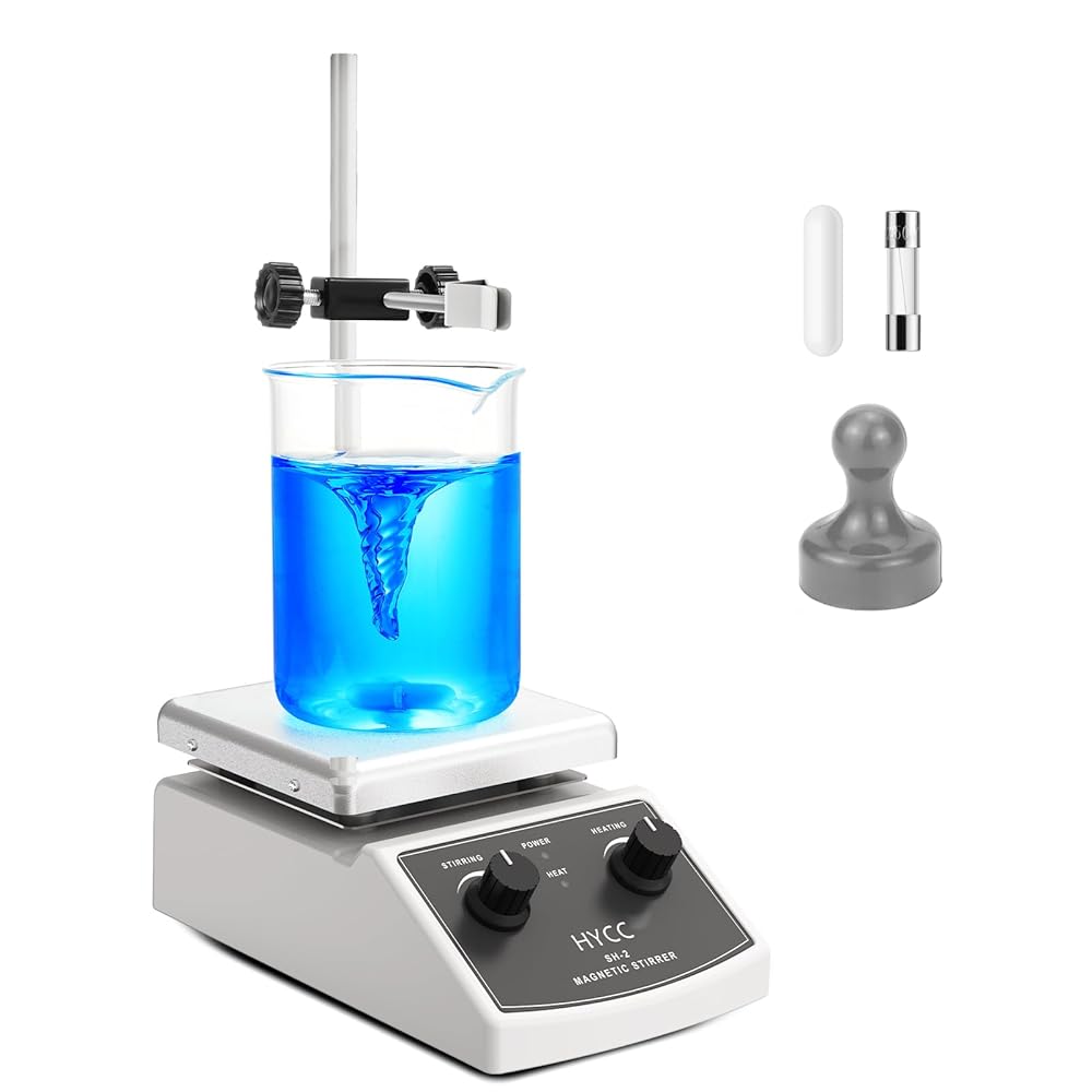 HYCC لوح تسخين مغناطيسي بحد أقصى 520 درجة فهرنهايت، 100-2000 دورة في الدقيقة لوح تسخين مع محرك مغناطيسي، محرك مغناطيسي 2000 مل، شريط تحريك مغناطيسي، مسترد شريط التحريك
